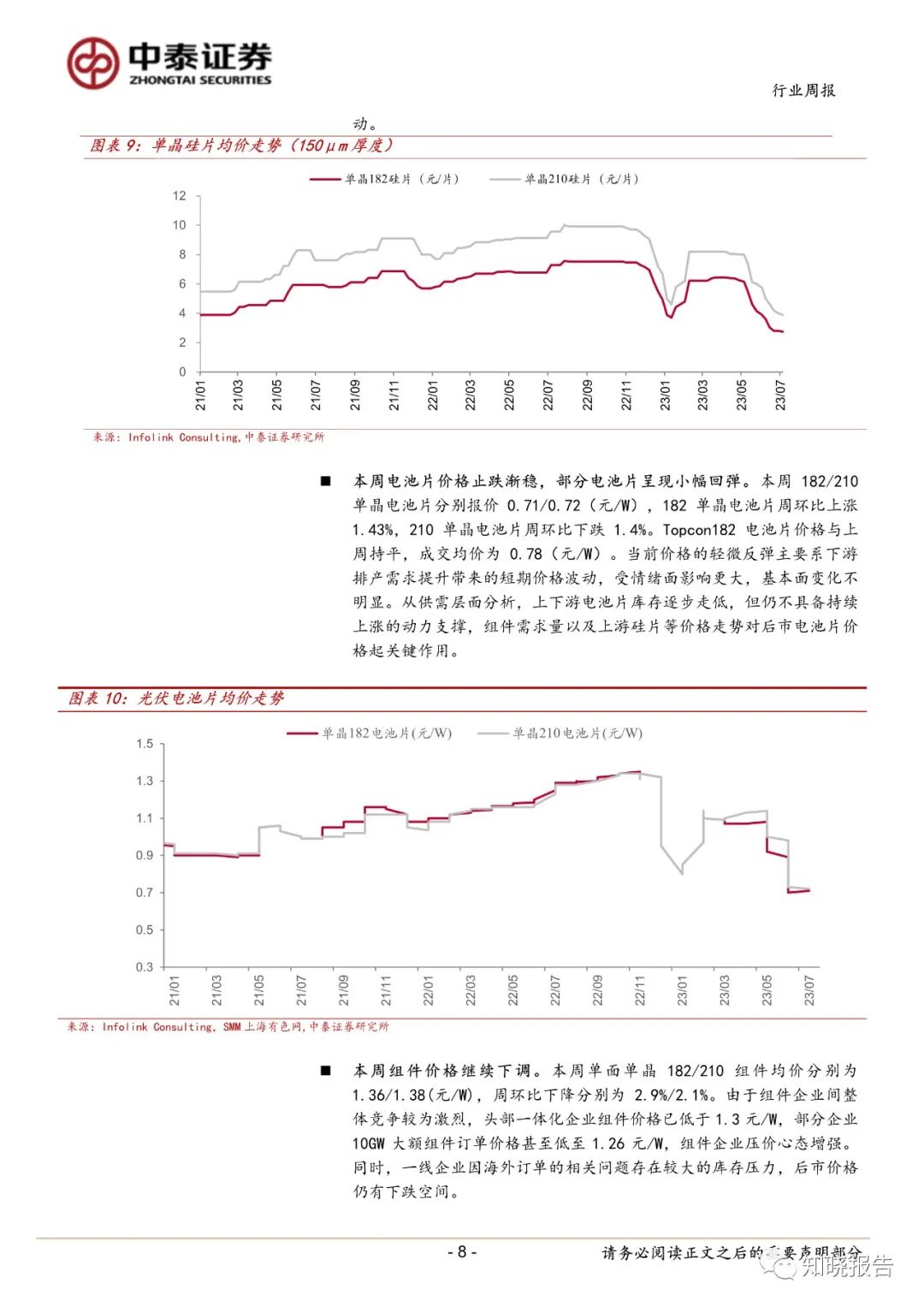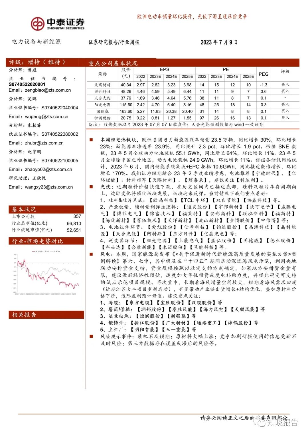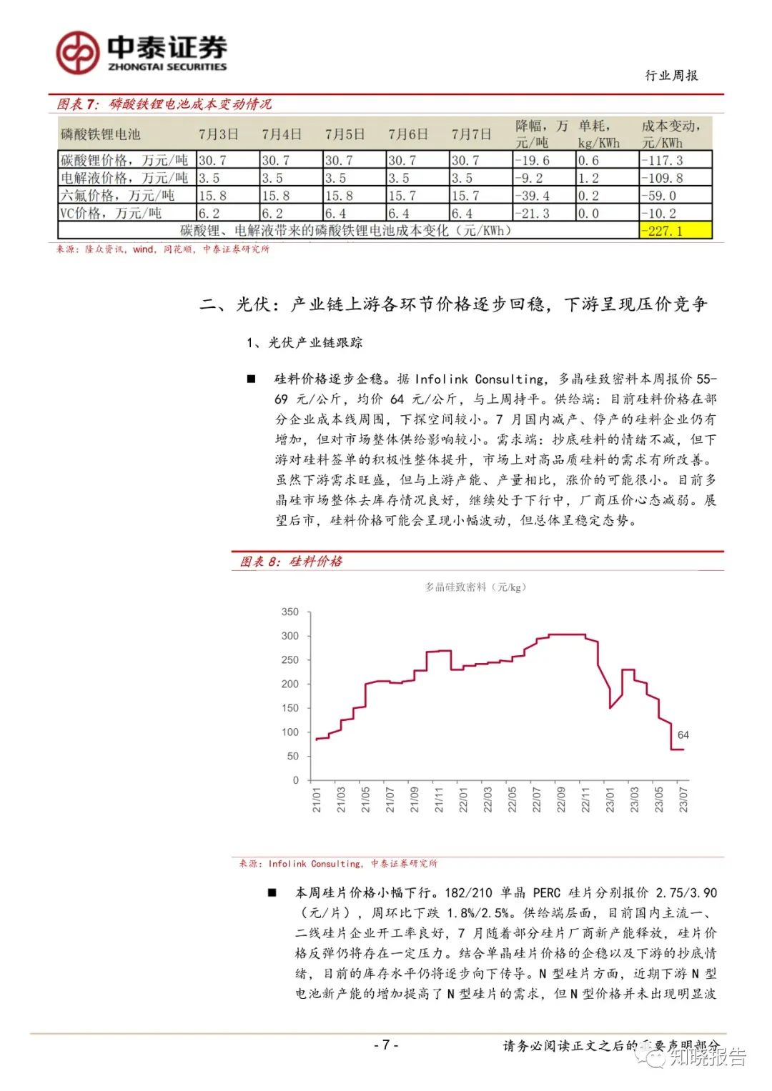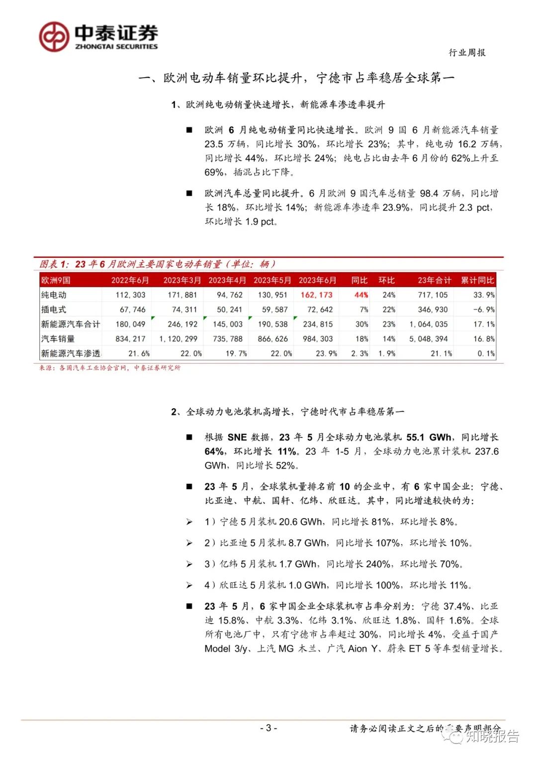 本周锂电池板块,欧洲9国6月新能源汽车销量23.5万辆,同比增长30%,环比增长23%;新能源车渗透率23.9%,同比提升2.3 pct,环比增长1.9 pct。根据SNE数据,23年5月全球动力电池装机55.1 GWh,同比增长64%,环比增长11%。23年5月全球除中国之外地区,动力电池装机24.9 GWh,环比增长11%。根据各储能网站统计,2023年6月,国内储能系统集成+EPC招标10.6GWh,同比接近翻倍增长,环比增长170%。