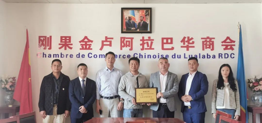 2023年7月17日下午,卢阿拉巴华商会领导与刚果重型工程机械有限公司代表在商会办公处进行了荣誉证书授予仪式,因刚果重型工程机械有限公司在2023年度大联工作中贡献突出并在卢阿拉巴省大联防启动仪式给予赞助支持,卢阿拉巴华商会特授予其“大联防赞助单位”称号。