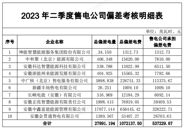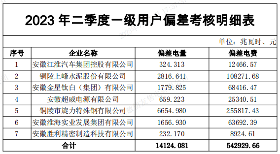 根据2023年7月20日安徽电力交易中心公布《2023年二季度安徽电力直接交易偏差清算结果公示》,安徽信友售电有限公司代理用户2023年二季度实现无偏差考核!!!