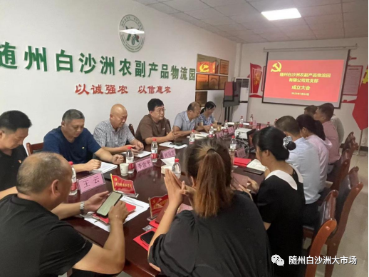 在南郊街道柳树淌社区党委的悉心指导下,7月18日随州白沙洲农副产品物流园有限公司功能型党支部成立大会隆重召开。曾都区市场监督管理局、南郊街道柳树淌社区党委相关领导出席。