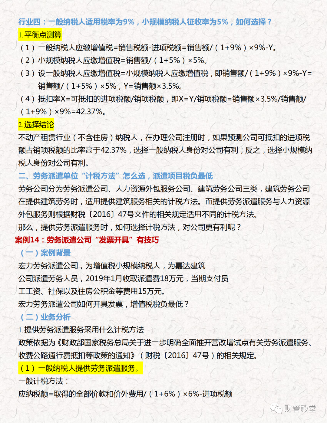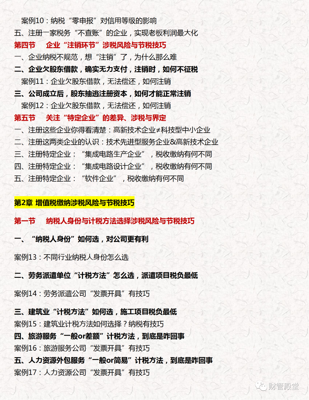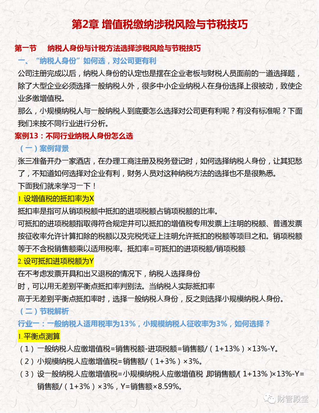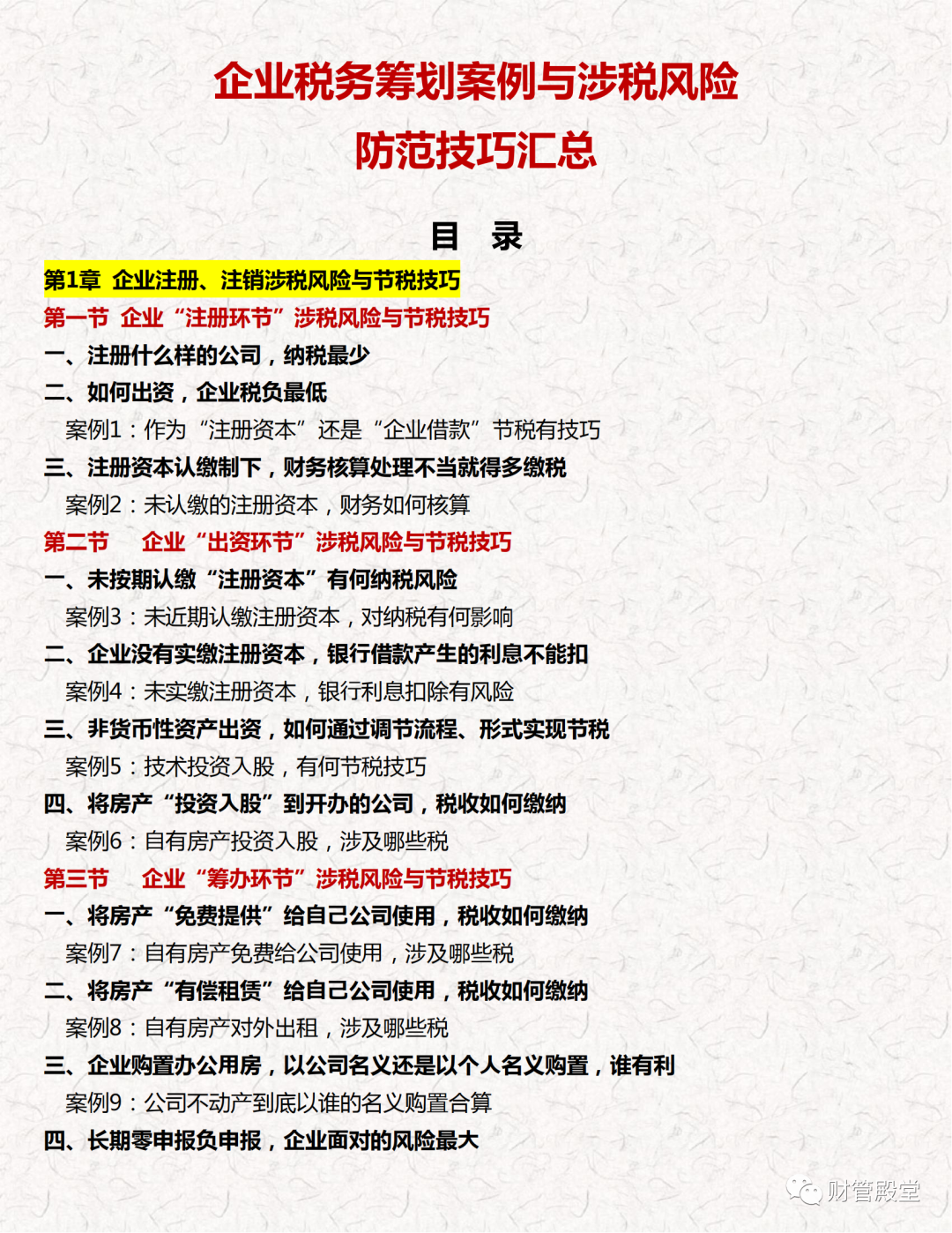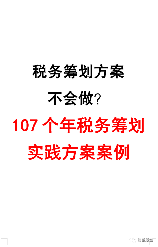 公司税务筹划不会做?107个税务筹划实践方案案例分析,大家瞅瞅!公司领导让你出一个税务筹划方案,你没有一点思路!光着急也不是解决问题的办法!今天把我们财务经理跟我们培训的公司税务筹划方案案例分析及涉税风险提醒,都给大家汇总了一份,其中包含了公司业务中常见的三大税种、增值税筹划具体案例、企业所得税筹划具体案例以及个人所得税筹划案例等等,除此之外,新公司注册成立初期涉及的筹划思路也有具体的案例分析。希望今天的内容对大家有帮助吧!往下看看!