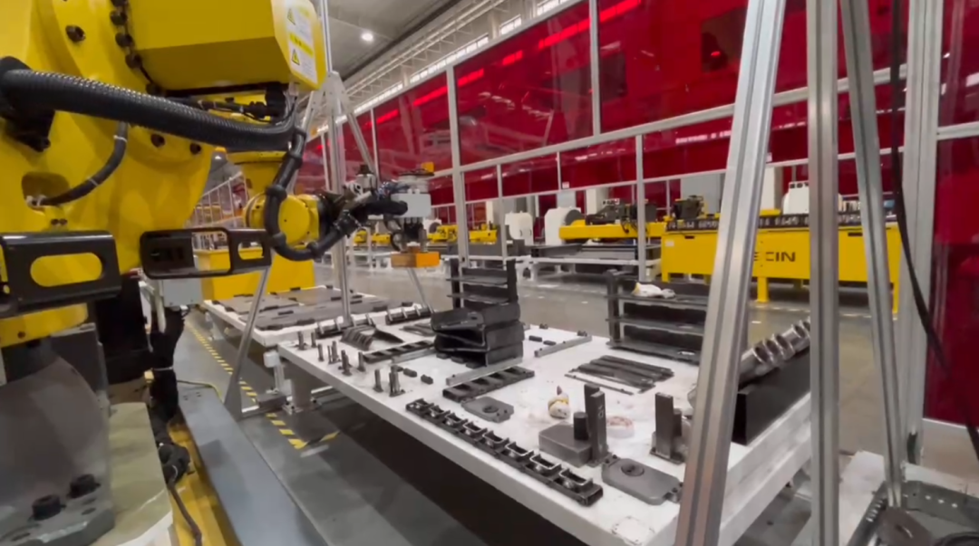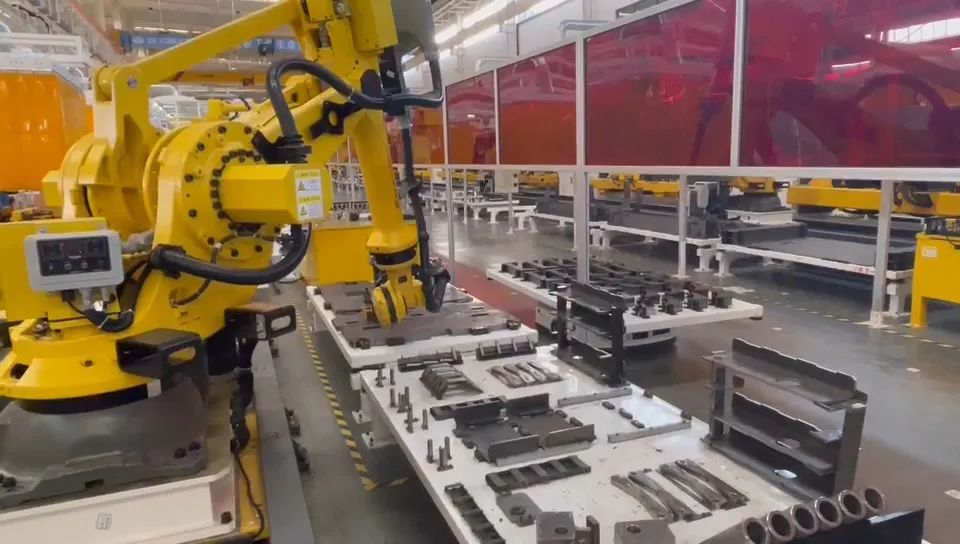 海康机器人3D视觉引导解决方案是一种先进的图像处理和识别系统,能够在复杂的场景中实现车架零件识别与定位,利用高精度的三维视觉算法,准确识别和定位零件,从而提高车头预制线的装配效率。