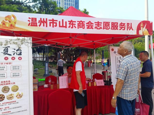 7月20日,由市委两新工委、市委直属机关工委、市工商联、鹿城区工商联主办的“学思想、迎亚运、当先锋、促践行”志愿服务活动在鹿城区松台广场举行。温州市山东商会、商会党支部积极响应,组织志愿者服务队,以“暑期健康咨询,预防中风,保护健康”为主题,开展服务活动,获得了市民群众的广泛认可。
