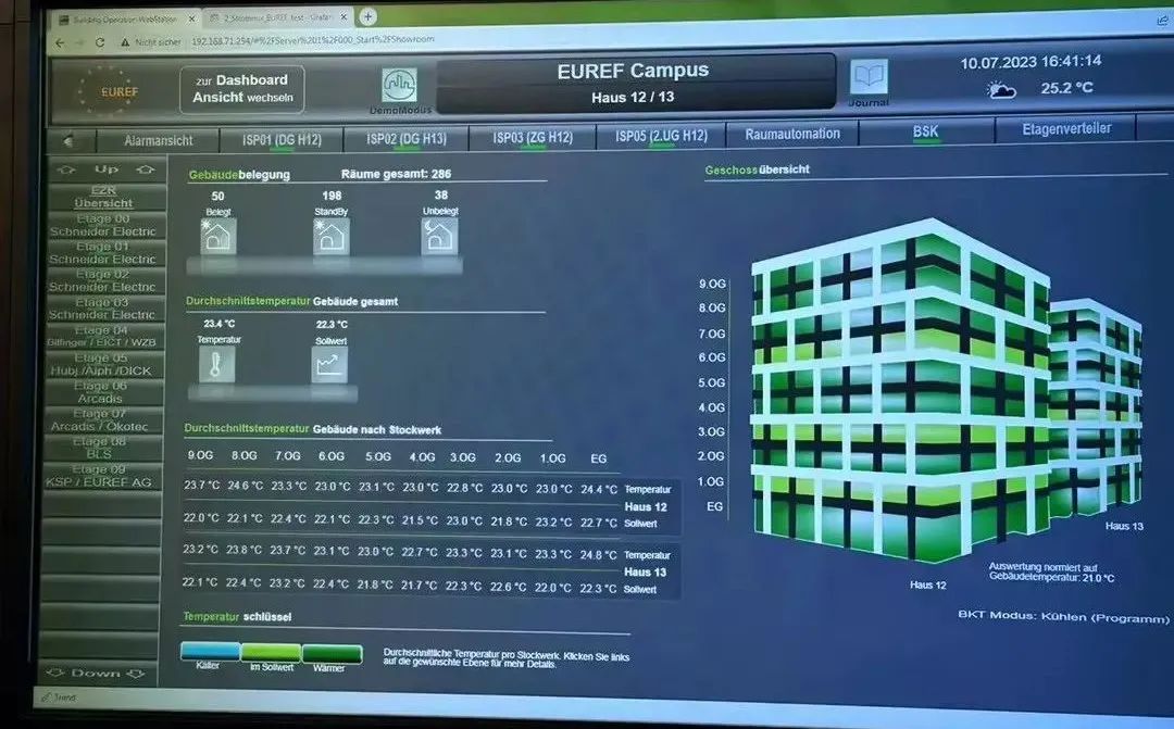 我们的学员里建工行业占了大头,这几年国内房地产低迷,从业人员的发展前景不明朗。很多同学对要不要学习心存疑虑。这次参观行程我特别关注了和我们学员工作相关的部分,施耐德智慧大楼和能源改造。在建筑革新上,施耐德将节能的理念贯彻在设计和施工中。整个大楼的墙壁里面,预埋了热水管和凉水管,然后所有楼层房间里的温度,都会通过冷热的均衡储备进行调控。如果天气炎热,温度快速升高,墙里埋置的水管就可以起到降温作用;反之,如果天气寒冷,气温骤降,这个水管也可以转换供暖模式。同时,楼顶的太阳能板也能将能源直接供应大楼的能源需求。在阿德霍夫科技园,德国最大的高科技产业园区,我们看到很多太阳能光伏板在建筑上的应用。给我们分享的Helmholtz Zentrum Berlin公司的工程师介绍到,德国的能源改造有法令规定,要求大厦的公共屋顶太阳能改造达到30%。但是他们实际做的,并没有简单停留于完成法规要求的改造目标,而是从法规设立的出发点——最大限度地实现节能来着手工作。因为像有一些摩天大楼,占地面积不大,楼顶很小,这样的话,即便完成30%的硬指标,发挥的作用也很小。所以,他们在此之外,还会通过幕墙、窗户等各种细节上的创新研发嵌入太阳能光伏板,真正实现终极的节能和环保。