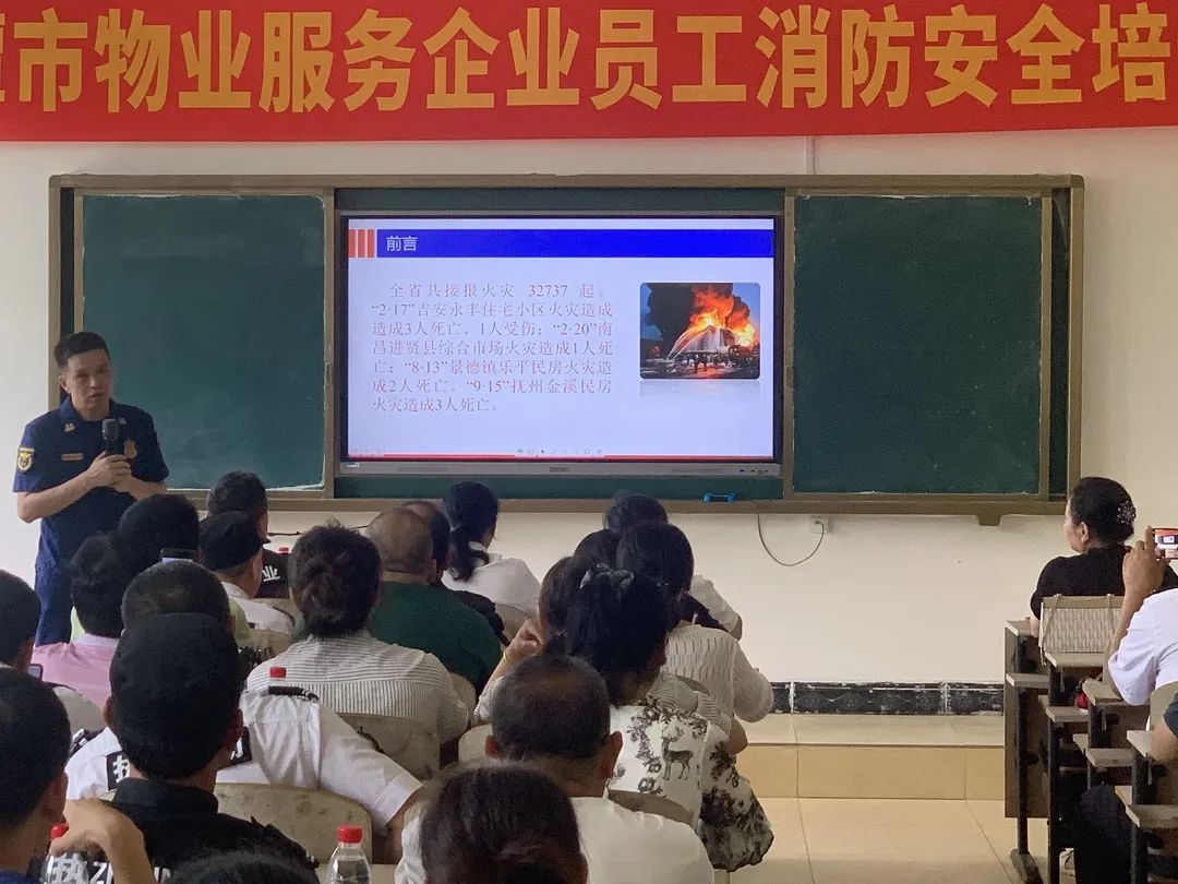 为进一步提升全市物业服务企业消防安全管理水平和物业从业人员消防安全意识。近日,鹰潭市消防救援支队联合鹰潭市住房和城乡建设局、鹰潭市物业服务行业协会在全市部署开展物业服务企业员工消防安全培训,重点针对物业服务企业管理者和普通员工两类人员,围绕消防安全法律责任、消防安全管理、设施设备维护、消防“生命通道”治理、微型消防站建设、宣传巡查要点等进行专题培训。采取统分结合、分批培训的方式,组织开展“理论+实操”消防安全培训。