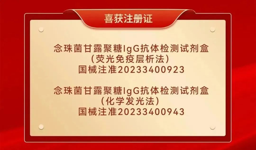 2023年7月6日,丹娜生物念珠菌甘露聚糖IgG抗体检测试剂盒(荧光免疫层析法)获国家三类医疗器械注册证,注册证号:国械注准20233400923。丹娜真菌病POCT检测平台,还有Quic GM、Quic 曲霉IgG、Quic烟曲霉IgE和总IgE检测均已取得注册证,完善了真菌病更早期、更快速、更精准的床旁检测,对于患者早期启动治疗,改善预后至关重要,且简单便捷的操作可满足各级医疗机构及不同的应用场景的使用,标志着真菌病快检时代的重磅来临!