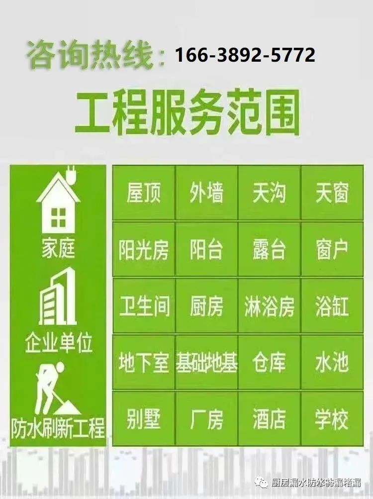 郑州上街区厨房防水补漏公司:16638925772专业建筑楼房渗水漏水维修公司,专修各种疑难大小防水补漏工程。各种新旧屋面防水补漏、厨房防水补漏、卫生间防水补漏,阳台防水补漏、建筑防水补漏、洗手间防水补漏、外墙防水补漏、屋顶防水补漏、地下室防水补漏、屋面防水补漏施工。