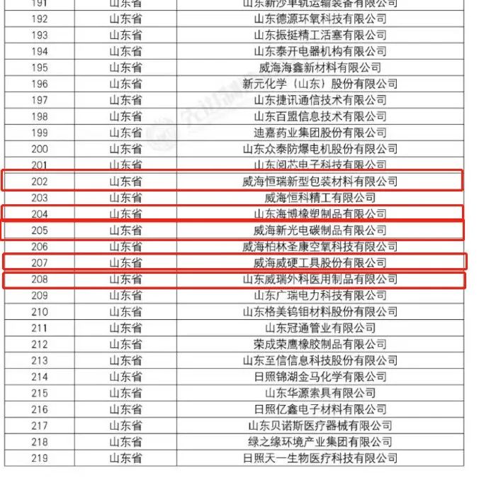 近日,国家工业和信息化部、山东省工业和信息化厅分别公布了第五批专精特新“小巨人”和2023年度山东省“瞪羚”企业名单,初村镇共有8家企业上榜。其中,威海恒瑞新型包装材料有限公司、山东海博橡塑制品有限公司、威海威硬工具股份有限公司、威海新光电碳制品有限公司、山东威瑞外科医用制品有限公司5家企业上榜专精特新“小巨人”企业名单,威海天力电源科技有限公司、天鑫精工科技(威海)有限公司、威海威高富森医用材料有限公司3家企业上榜省级“瞪羚”企业名单。
