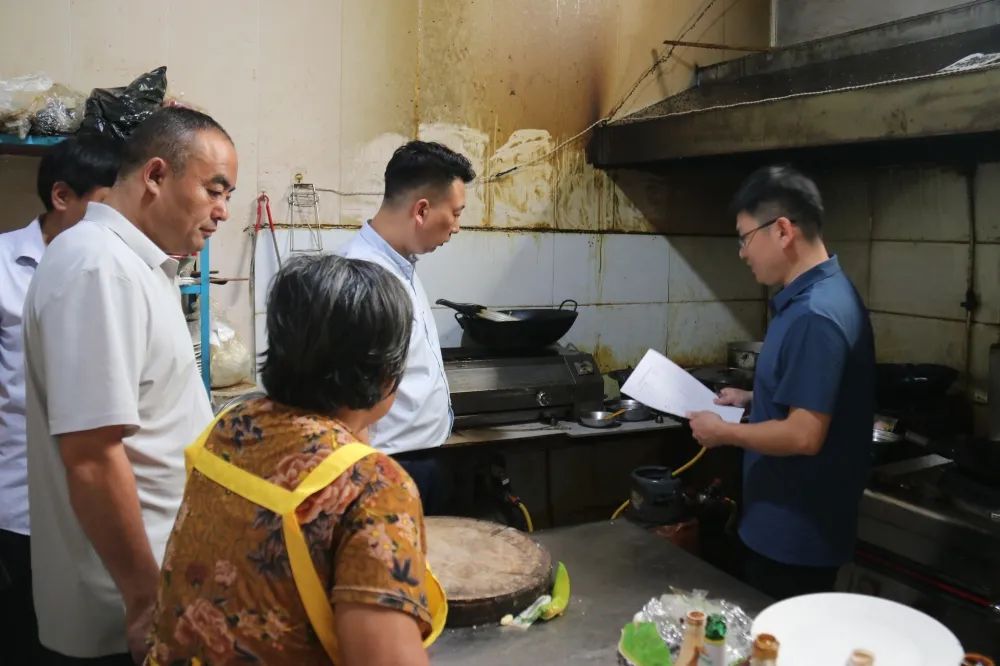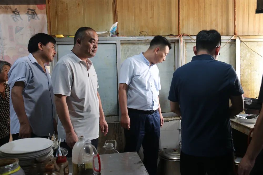 7月22日,县商务局党组书记刘明晓带队到石莲子镇督导检查餐饮行业燃气安全工作,镇党委副书记、镇长刘明等陪同。
