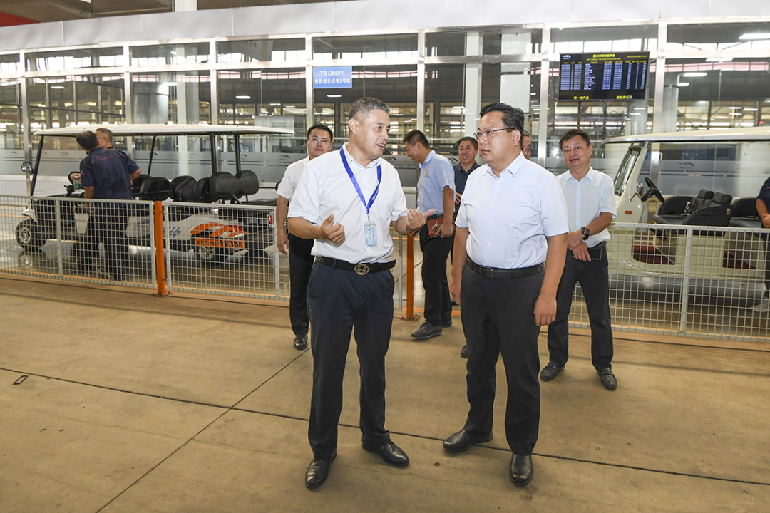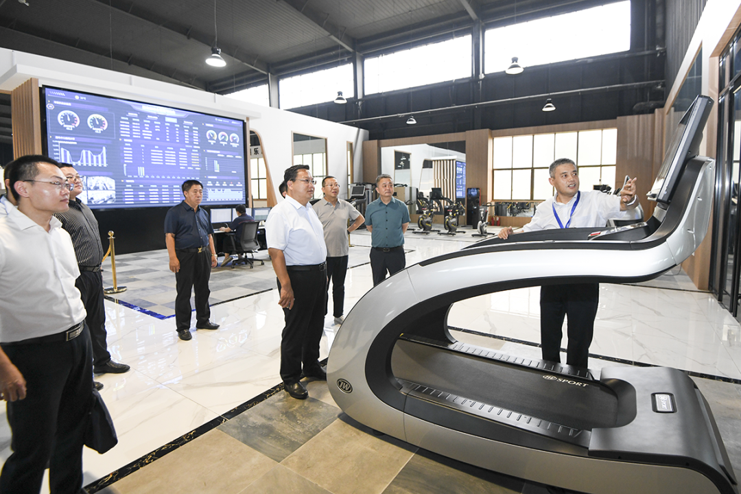 张洪昌一行先后参观了迈宝赫机加车间(德国通快激光切管机)、焊接车间、喷涂车间、组装车间(智能组装流水线)以及企业产品展厅等区域,深入细致地了解了迈宝赫健身器材的生产设备、生产工艺、生产标准和生产体系等,对其严格的品质标准,丰富的产品结构,完善的售后服务表示赞叹。