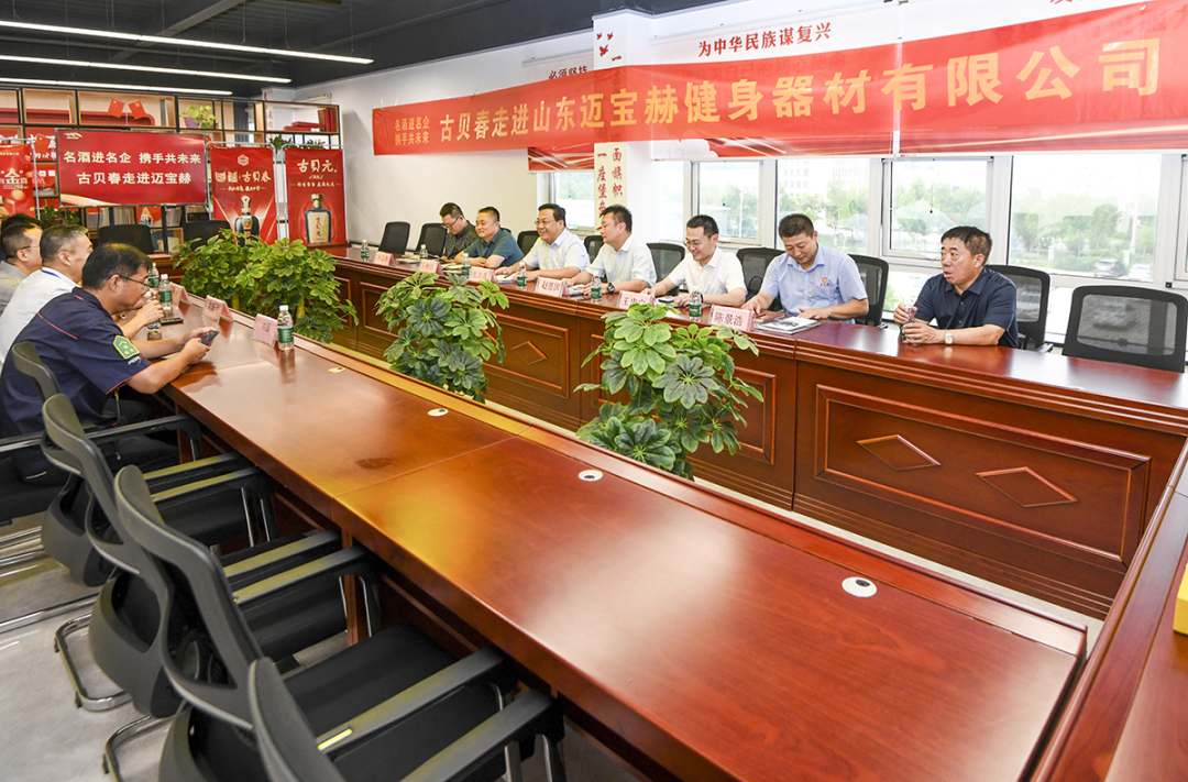 茶叙期间,山东迈宝赫健身器材有限公司董事长赵世龙对古贝春集团总经理张洪昌一行的到来表示热烈欢迎,并就公司的企业情况、产品创新、管理模式、发展前景等进行了简单介绍。