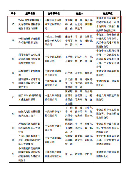 近日,中国施工企业管理协会公布了第三届工程建造微创新技术大赛结果,本次大赛共征集申报2803项微创新技术成果,经初赛、复赛、决赛及公示等环节,中国水利水电第四工程局研发的技术成果《7MW导管架基础海上风电塔架底塔制作安装技术研究与应用》荣获第三届工程建造微创新技术大赛三等成果。