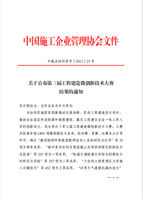 工程建造微创新技术大赛由中国施工企业管理协会主办,微创新技术是指瞄准工程建设一线技术难点和管理难题,研发出技术先进、推广性强、适用范围广、经济社会效益明显的小发明、小创造、小革新、小设计、小成果。此次申报成果形成了一套系统化、成熟高效的海上风电塔架底塔制作安装工艺,项目研究过程中获得了3项国家发明专利、9项国家实用新型专利,技术创新效果显著。