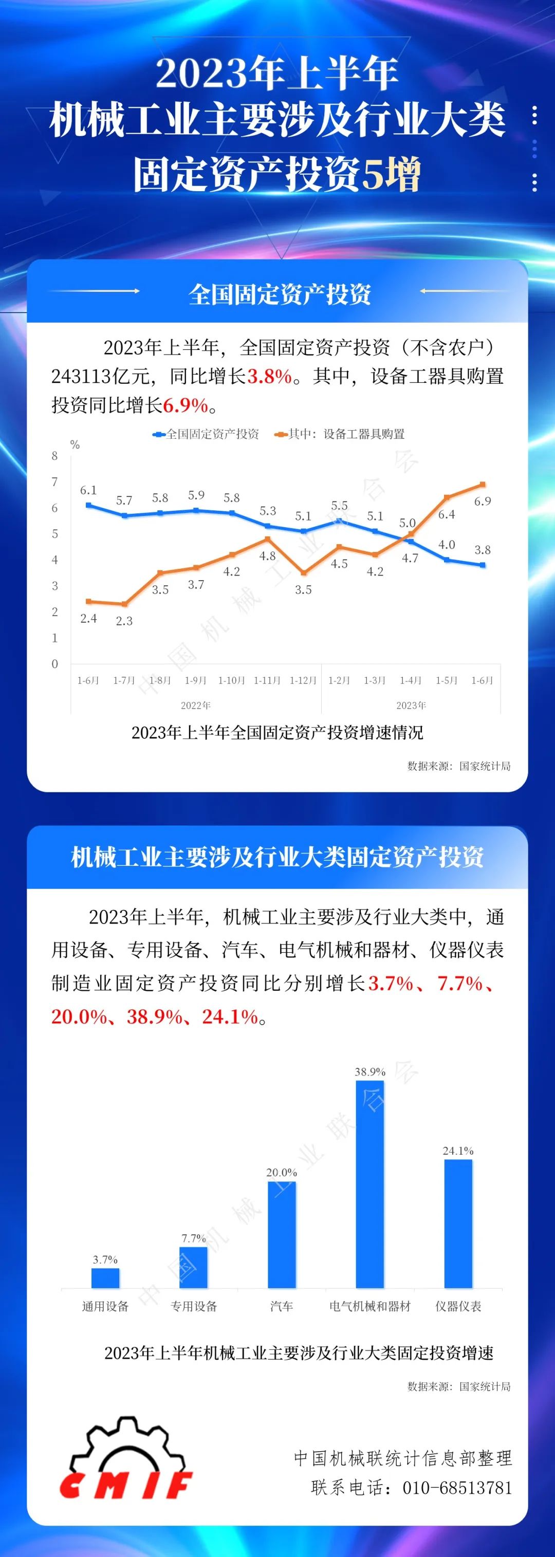 【行业数据】2023年上半年机械工业主要涉及行业大类固定资产投资5增
