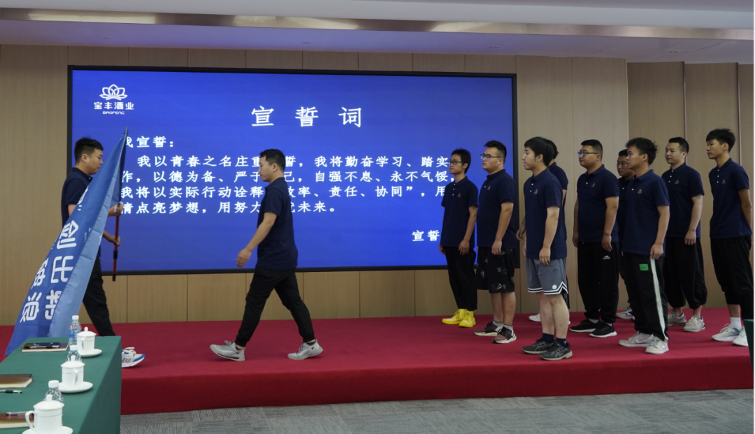最后的授旗及签约仪式上,新一届销售培训生共同宣誓,纷纷表示通过开营仪式深刻认识到自己肩负的责任和使命,将以更加充沛的热情投入到今后的学习和实践中,不断提高自己的专业素养和管理能力,为宝丰酒业的发展贡献自己的智慧和力量。