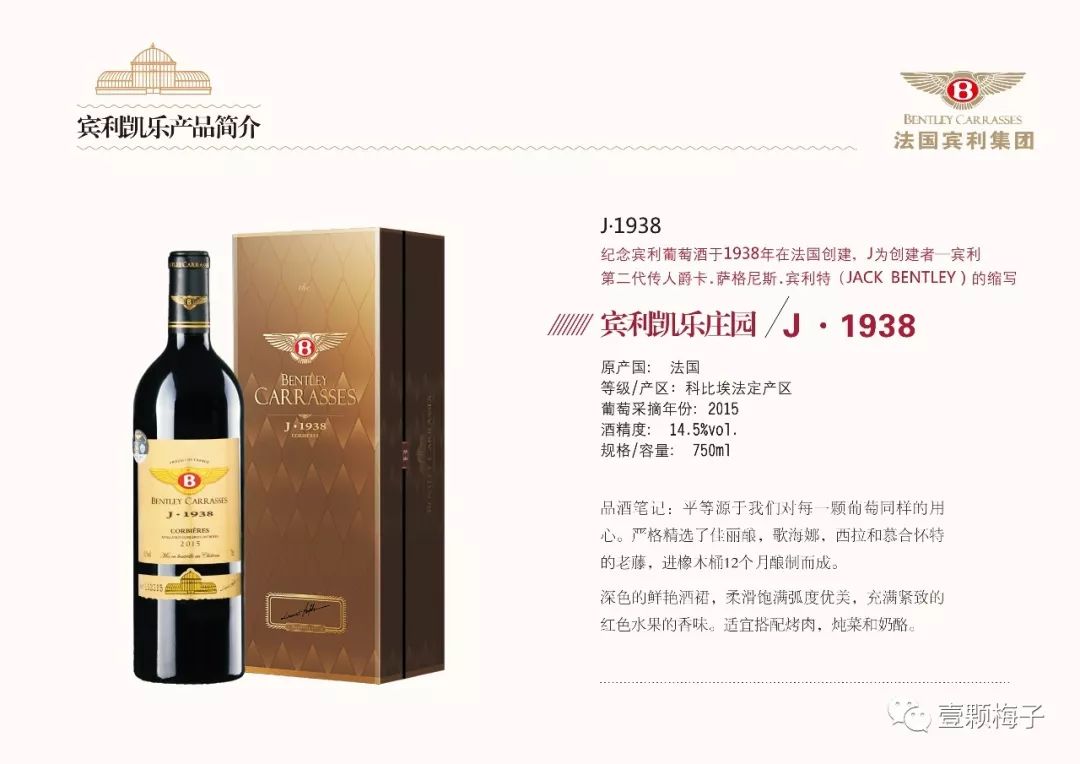 【宾利凯乐庄园/J · 1938干红】