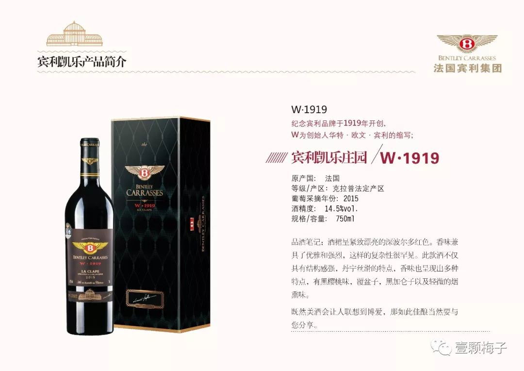 【宾利凯乐庄园W·1919干红】