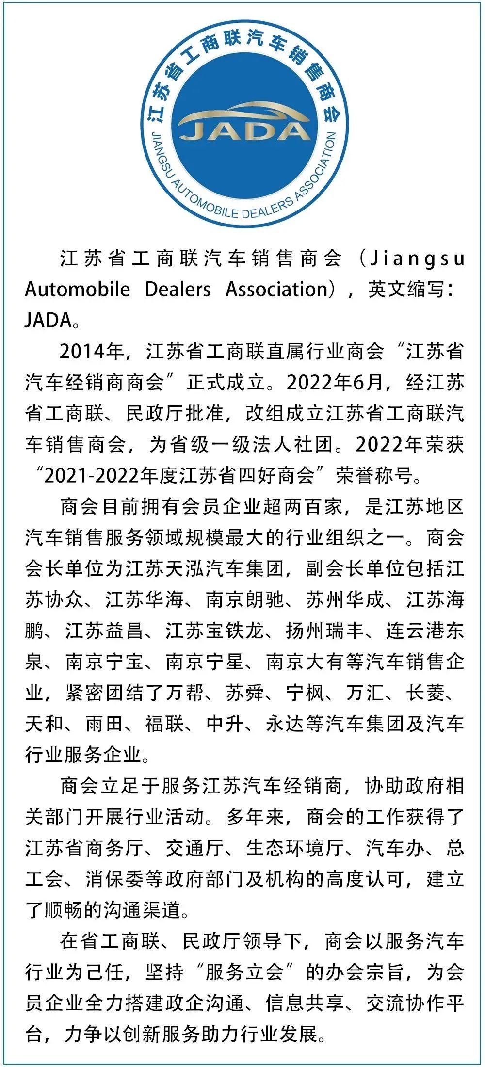 刘聪主席指出,汽车商会要坚持党建引领,加强政治学习,引导行业、企业顺应发展趋势,坚定发展信心。商会要加强会员之间的沟通交流,引领行业企业高质量发展。商会要发挥平台优势,进一步加强组织建设,发挥桥梁纽带作用,积极向行业主管部门提出切实可行的办法和建议,化解难题,激发产业发展动力,更好地服务企业,服务行业,服务政府,为促进引导汽车市场复苏做出更大贡献。省工商联支持推动“长三角汽车商协会联盟”的建设,也会为汽车商会、会员企业和行业发展提供更多的帮助。