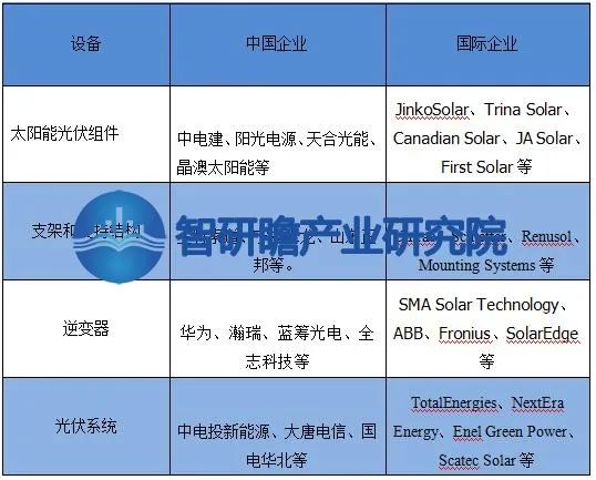光伏系统集成商:中国企业:中电投新能源、大唐电信、国电华北等。国际企业:TotalEnergies、NextEra Energy、Enel Green Power、Scatec Solar等。