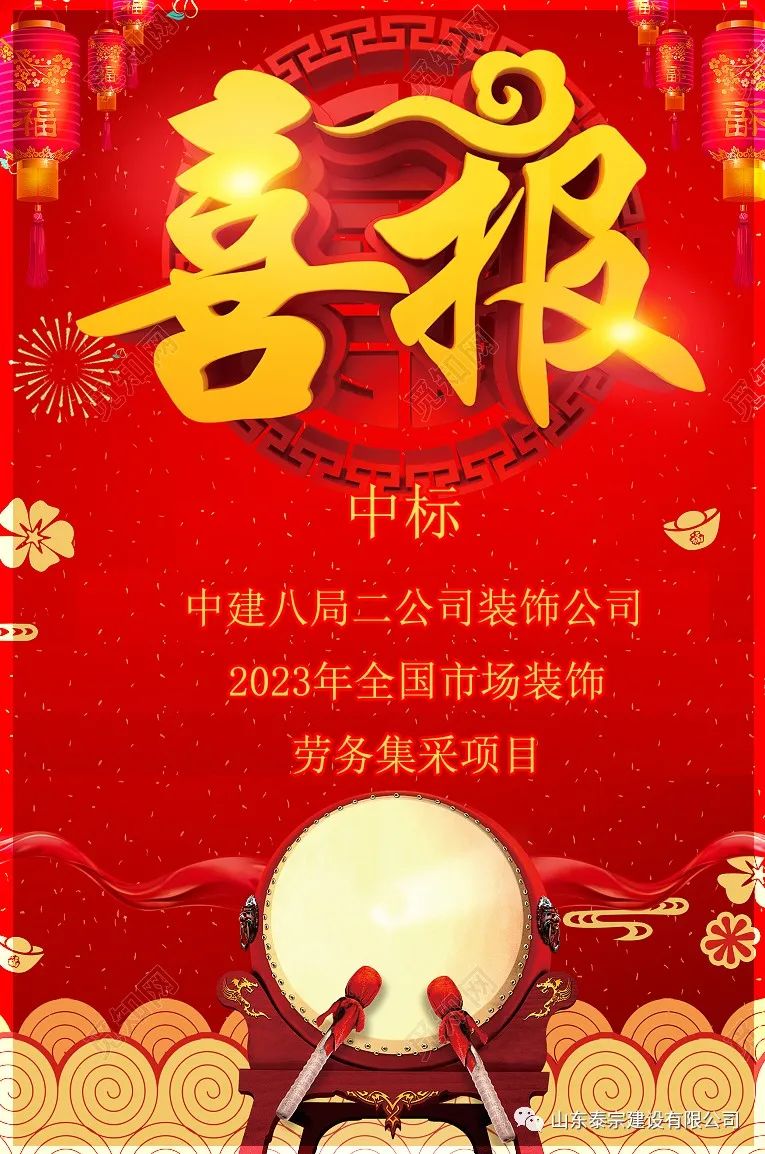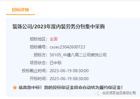 喜报:公司中标中建八局二公司装饰公司2023年全国市场装饰劳务集采项目