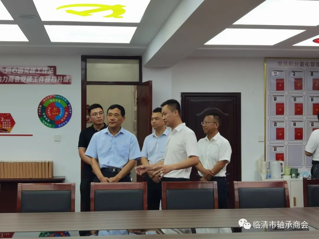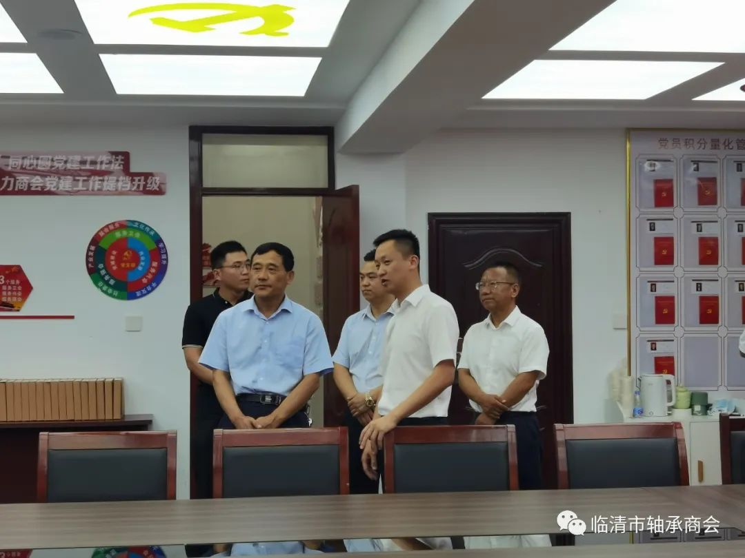 7月21日,由聊城市民政局党组成员、副局长刘强一行莅临临清市轴承商会调研指导党建以及在服务经济社会发展中商会发挥的作用等工作情况,聊城市社会组织服务中心主任商爱民、临清市民政局党组书记宋绍山、临清市民政局分管负责同志马啸宇、临清市轴承商会会长杨海涛、理事杨木才陪同调研。