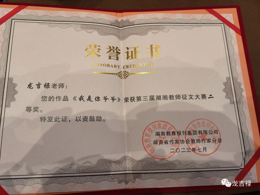 从那一年开始,我就对写作有个新的认识,决定要多写,多读书。目前公众号写作,利用零零散散时间,差不多有三年,我取得小成果,荣获过纪委征文比赛的一等奖,湖湘教师第三届征文比赛二等奖。