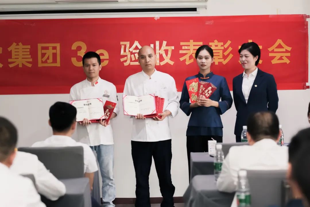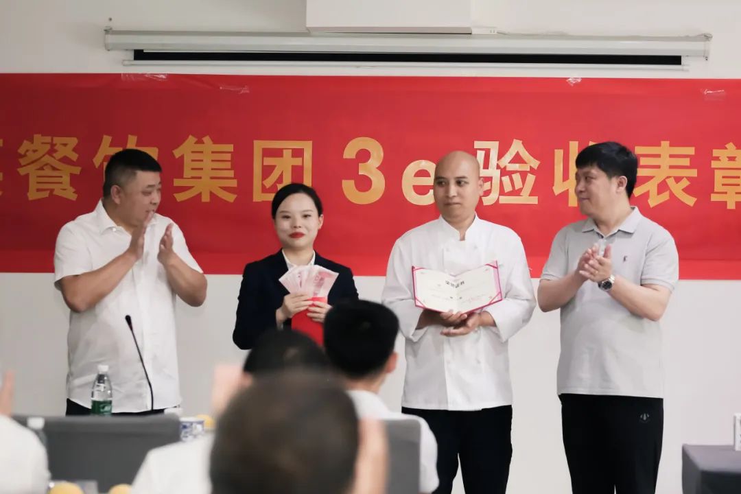 通过评比,万科茗鲜、许家菜.樽宴店获得3e实践基地;仁和、天府、望江、大魔方茗鲜店获得优秀样板店;各店评选了优秀班组和优秀个人分别对他们进行挂牌,颁发证书和奖金,希望他们再接再厉、再立新功。