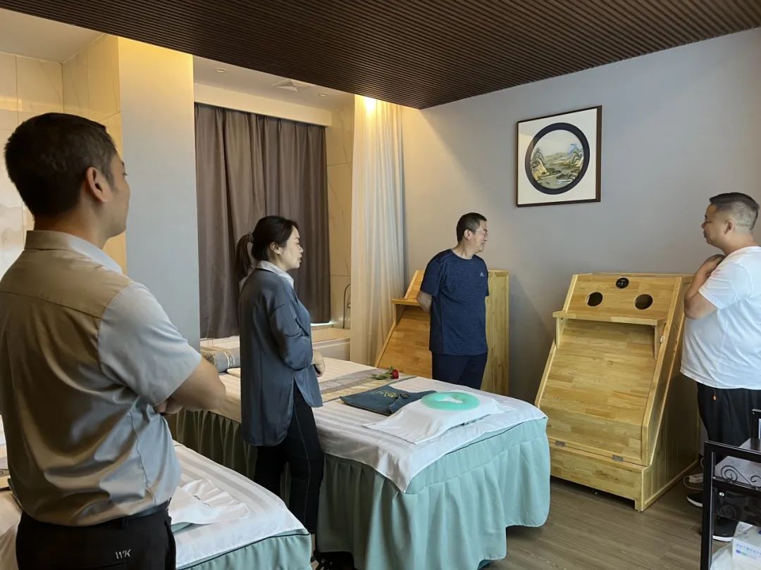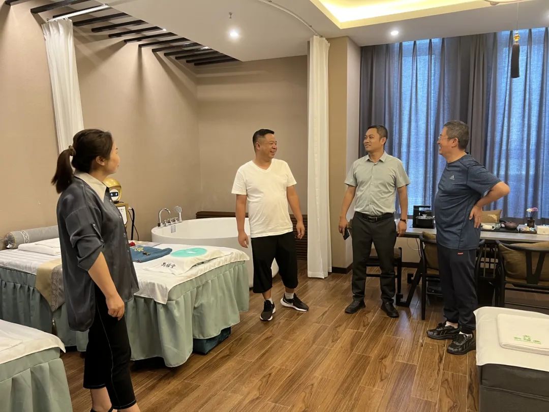 贵州黔福堂亚健康管理有限公司总经理王兰对商会一行表示热烈欢迎并带领参观了养生馆内部建造,讲述了开馆初衷、经营业务、店面规模、专业队伍和发展情况,与到访的各位会长进行了充分交流。王总对富力商会及商圈发展也提出宝贵意见和建议:要合理布局规划,利用好独有的区域优势,吸引更多企业商家入驻,企业商家活跃起来,才会让区域更好地“动起来”,才能更好地畅通商会内循环。商会领导对王总提出的意见建议表达了感谢,同时表示:此次走访不仅更好地了解了企业,而且商会与会员有相同的目标,向同一方向前进,“众人拾柴火焰高”,相信富力商圈经济进一步发展会更快到来。