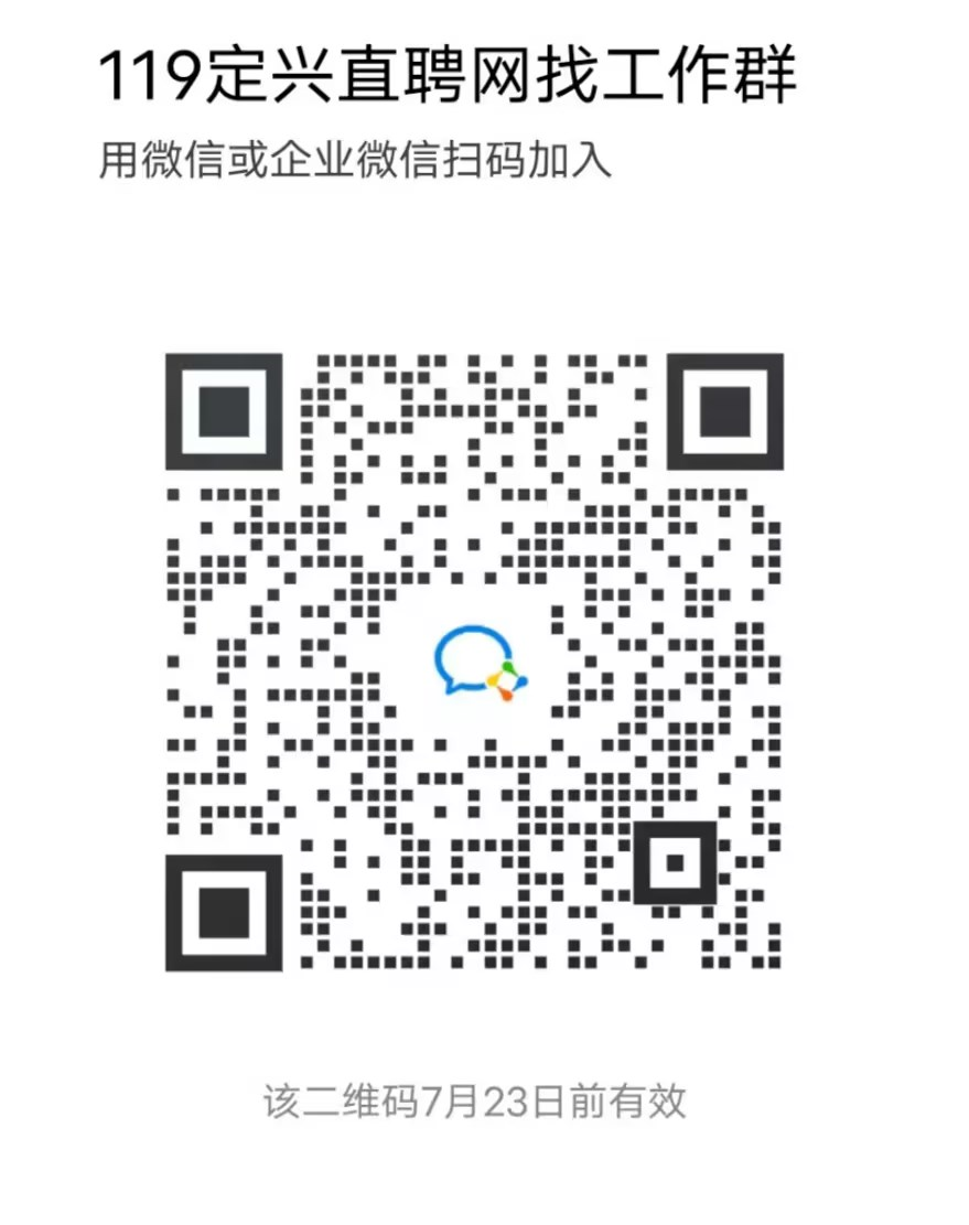 车间班组长4000-5000元/月提供食宿 | 节日福利 | 带薪年假 | 工作餐 | 年终奖 | 免费培训 | 晋升空间 | 五险企业名称:河北西麦食品有限公司公司地址:定兴县工业园区南环路西段河北西麦食品有限公司南门工作要求:岗位职责: 1、执行生产管理规范要求根据车间生产计划安排生产,确保生产计划达成; 2、落实“7s”管理要求,维护生产现场基础设施和工作环境,确保安全文明生产作业; 3、协调生产所需物料、人员,执行产品的生产任务; 4、每天召开车间例...长按识别二维码,了解更多车间普工/码垛工20名3000-5500元/月提供食宿 | 节日福利 | 晋升空间 | 免费培训企业名称:河北西麦食品有限公司公司地址:定兴县工业园区南环路西段河北西麦食品有限公司南门工作要求:河北西麦食品有限公司诚聘: 生产工人20名 要求:18-46周岁,男女不限,身体健康,吃苦耐劳、遵规守纪,能适应加班。 待遇:计件工资,月均薪资3500-5500元,长白班,免费提供食宿,有洗浴和wifi,生日和节假日福利等。 地址:河北保...长按识别二维码,了解更多生产车间机手4000-5000元/月提供食宿 | 节日福利 | 晋升空间 | 免费培训 | 工作餐企业名称:河北西麦食品有限公司公司地址:定兴县工业园区南环路西段河北西麦食品有限公司南门工作要求:要求男性,25-35周岁之间,高中/中专及以上学历,机电一体化或者机械维修等相关专业,能够适应12小时黑白班倒。主要负责车间机械的正常运转监督维护。长按识别二维码,了解更多带薪培训采耳师学员4000-8000元/月企业名称:耳韵轩美容会所公司地址:河北省保定市定兴县中国银行西行300米路南达盛路中段十字路口处工作要求:带薪培训学员 第一个月带薪培训(2000—2500)第二个月(2500—3000)两个月后转正,月薪4000-10000元; 要求:年龄18-40岁之间,要求有上进心,责任心,认真工作,美容经验者优先 地址:定兴县中国银行西行300米路南,...长按识别二维码,了解更多高薪招聘美容师学员4000-8000元/月企业名称:耳韵轩美容会所公司地址:河北省保定市定兴县中国银行西行300米路南达盛路中段十字路口处工作要求:带薪学员 第一个月带薪培训(2000—2500)二个月(2500—3000)两个月转正,月薪4000-8000元; 要求:年龄18-40岁之间,要求有上进心,责任心,认真工作,美容经验者优先 地址:定兴县中国银行西行300米路南达盛路中段十...长按识别二维码,了解更多门窗设计师3500-6000元/月提供食宿 | 加班补助 | 年终奖企业名称:河北全景窗业有限公司公司地址:全景窗业(定兴镇新国道大街303号)工作要求:熟练使用CAD,认真负责,25—35周岁长按识别二维码,了解更多门窗厂打磨女工3500-6000元/月提供食宿 | 加班补助 | 年终奖企业名称:河北全景窗业有限公司公司地址:全景窗业(定兴镇新国道大街303号)工作要求:岗位职责: 1、按照车间主管要求,按时按量完成生产任务,完成当日当月生产任务; 2、按工艺要求进行生产操作;长按识别二维码,了解更多门窗厂招聘普工3500-8000元/月提供食宿 | 加班补助 | 年终奖企业名称:河北全景窗业有限公司公司地址:全景窗业(定兴镇新国道大街303号)工作要求:定兴全景窗业制造有限公司招聘 普工:按要求保质保量学习,生产,18—45周岁,男女不限 工资待遇:3000—8000,每天9小时,月公休2天,管吃,有意外险,20—45周岁长按识别二维码,了解更多门窗生产组装熟练工4500-8000元/月提供食宿 | 加班补助 | 年终奖企业名称:河北全景窗业有限公司公司地址:全景窗业(定兴镇新国道大街303号)工作要求:岗位职责: 1、按照车间主管要求,按时按量完成生产任务,完成当日当月生产任务; 2、按工艺要求进行生产操作长按识别二维码,了解更多车间女工4500-6000元/月提供食宿 | 工作餐 | 五险 | 带薪年假 | 加班补助企业名称:河北海虹塑料制品有限公司公司地址:河北海虹塑料制品有限公司(定兴镇新国道大街南段99号)工作要求:岗位职责: 1、按照车间主任要求,按时按量完成生产任务,完成当日当月生产任务; 2、按工艺要求进行生产操作; 3、完成领导交办的临时工作。 4、工作简单易操作。 任职要求: 1、年龄18-45周岁. 2、吃苦耐劳、细心、眼神好、有责任心。...长按识别二维码,了解更多招聘餐饮接电话客服-社保.双休3500-5000元/月节日福利 | 年终奖 | 晋升空间企业名称:河北源茂软件开发股份有限公司公司地址:河北省保定市定兴县昌盛北街28号工作要求:工作性质:负责接听客户来电,帮客户预定餐位。工作简单好上手,上岗前有培训,全程有老师帮扶。 工作待遇;带薪双休,法定假日带薪休,有社保、环境好、待遇好。 薪资待遇:3500--5000(因岗位而定) 工作时间:早上10:00---下午...长按识别二维码,了解更多门窗生产组装人员3500-7000元/月提供食宿 | 加班补助 | 年终奖企业名称:河北全景窗业有限公司公司地址:全景窗业(定兴镇新国道大街303号)工作要求:岗位职责: 1、按照车间主管要求,按时按量完成生产任务,完成当日当月生产任务; 2、按工艺要求进行生产操作;长按识别二维码,了解更多定兴门窗厂长白班+高薪招聘组装工、机械加工、普工3500-8000元/月提供食宿 | 加班补助 | 年终奖企业名称:河北全景窗业有限公司公司地址:全景窗业(定兴镇新国道大街303号)工作要求:按要求保质保量学习,生产,18—45周岁,男女不限 工资待遇:3500—8000元,每天9小时,月公休2天,管吃,有意外险,20—45周岁长按识别二维码,了解更多高薪招聘美