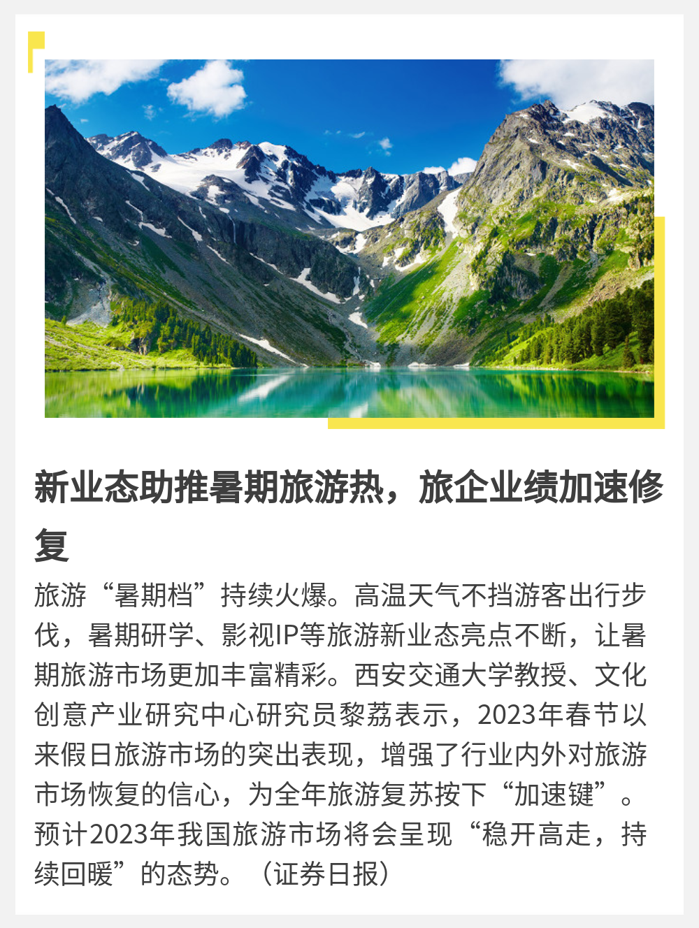 酒旅快讯|新业态助推暑期旅游热,旅企业绩加速修复