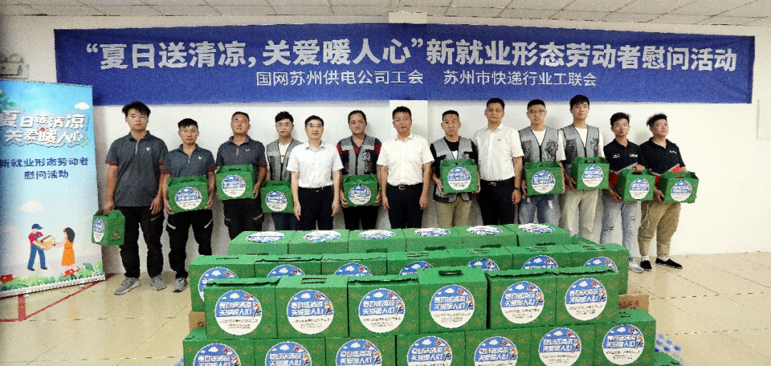 签约仪式后,与会领导向来自快递行业各站点的快递小哥代表赠送了清凉慰问品,为酷暑中依然坚守岗位的新业态劳动者送上了“娘家人”关爱。