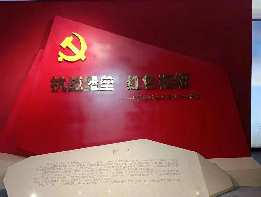 6月中旬 ,为纪念中国共产党建党102周年,洛阳某企业党总支赴“洛八办”开展红色教育学习,缅怀革命先烈,传承红色基因,接受党性教育。洛阳历史悠久,文化璀璨,十三个朝代在此建都。洛阳位于中原,北依邙山、黄河,南望伏牛、嵩岳,东靠虎牢,西据崤函,为历代兵家必争之地。抗日战争时期,洛阳是第一战区司令长官部和河南省政府的所在地、西北大后方的门户、阻挡日军南渡黄河的屏障、中国北方的抗战前哨。
