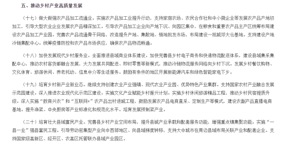 产业兴则百业兴,产业兴旺是乡村振兴的基石。没有产业的农村,难聚人气,更留不住人才。“产业”二字,是要摒弃曾经分散、粗放、没有增值收益的小农经济,而是将农民种植(养殖)的农林牧渔农产品进行精深加工,使得农作物(一产)、农作物加工(二产)、商品及商业流通(三产)融合发展,发展农产品加工、保鲜储藏、运输销售等,推动乡村产业上下游全链条升级。
