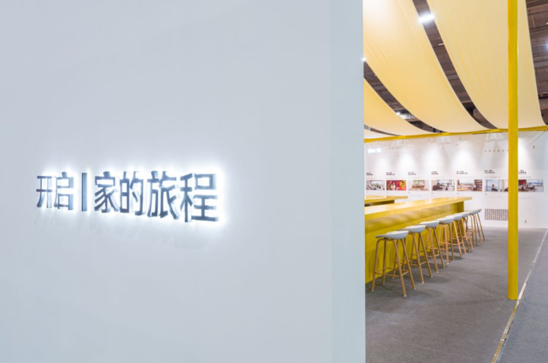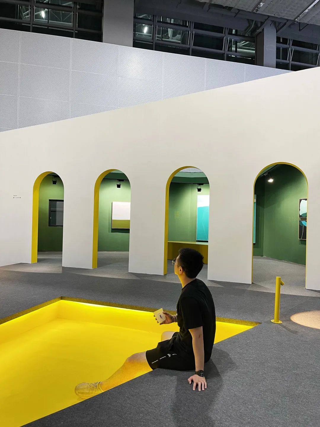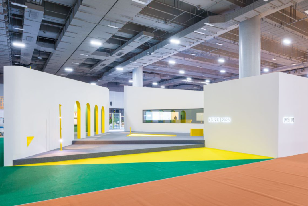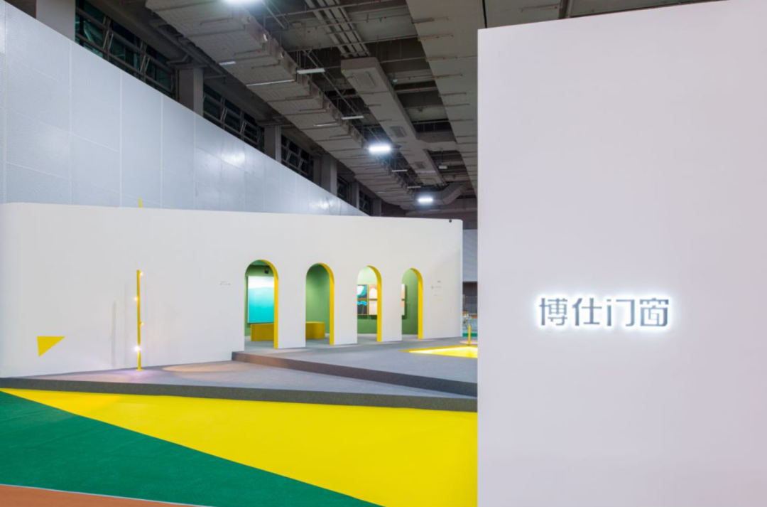 说的就是这个博仕门窗的展会现场。还没走进去,日站君就被整个空间白色、黄色、绿色、灰色的撞色,给吸引到了!