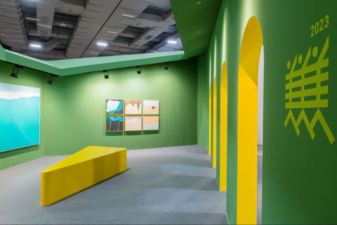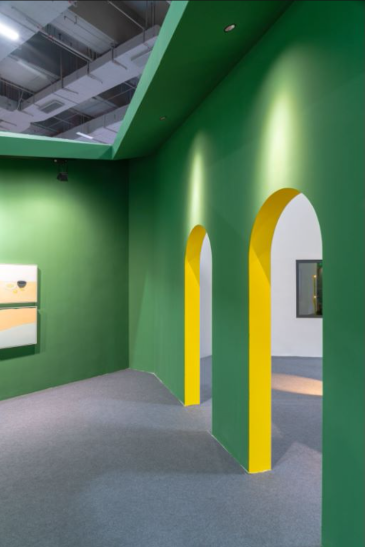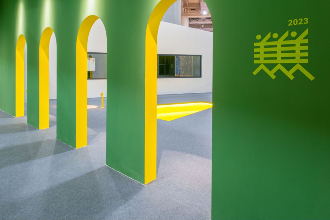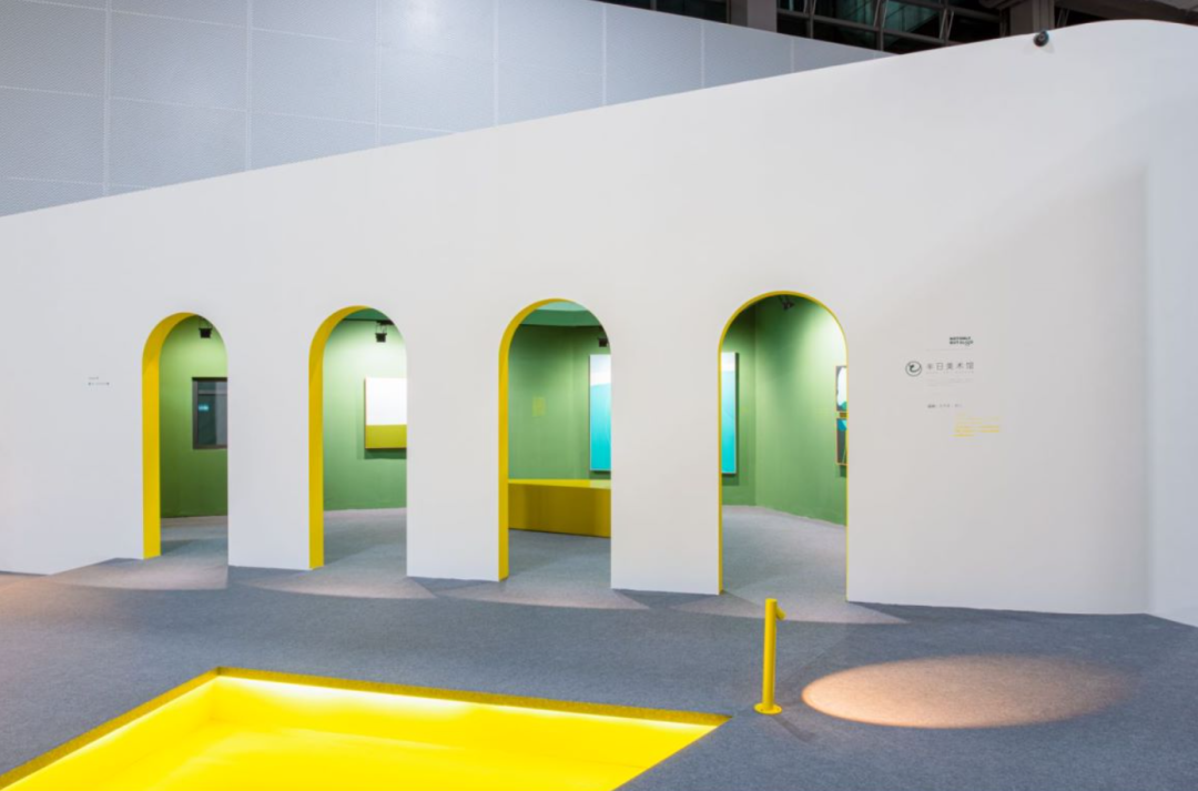 说的就是这个博仕门窗的展会现场。还没走进去,日站君就被整个空间白色、黄色、绿色、灰色的撞色,给吸引到了!