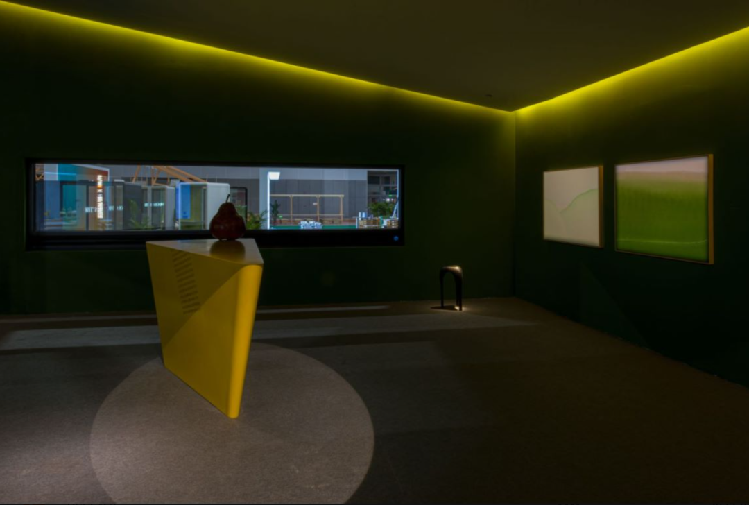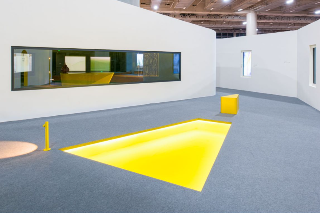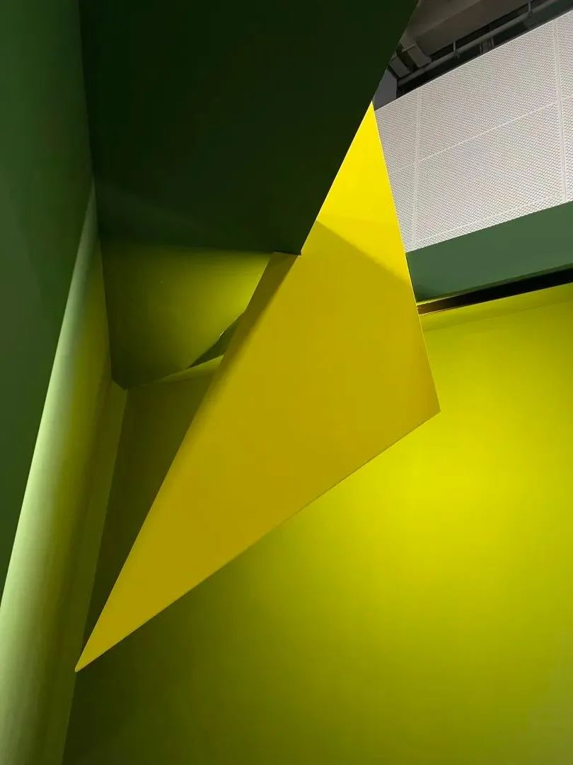 比如说,空间之中,多处出现黄色的三角形,它们彼此呼应、彼此关联。
