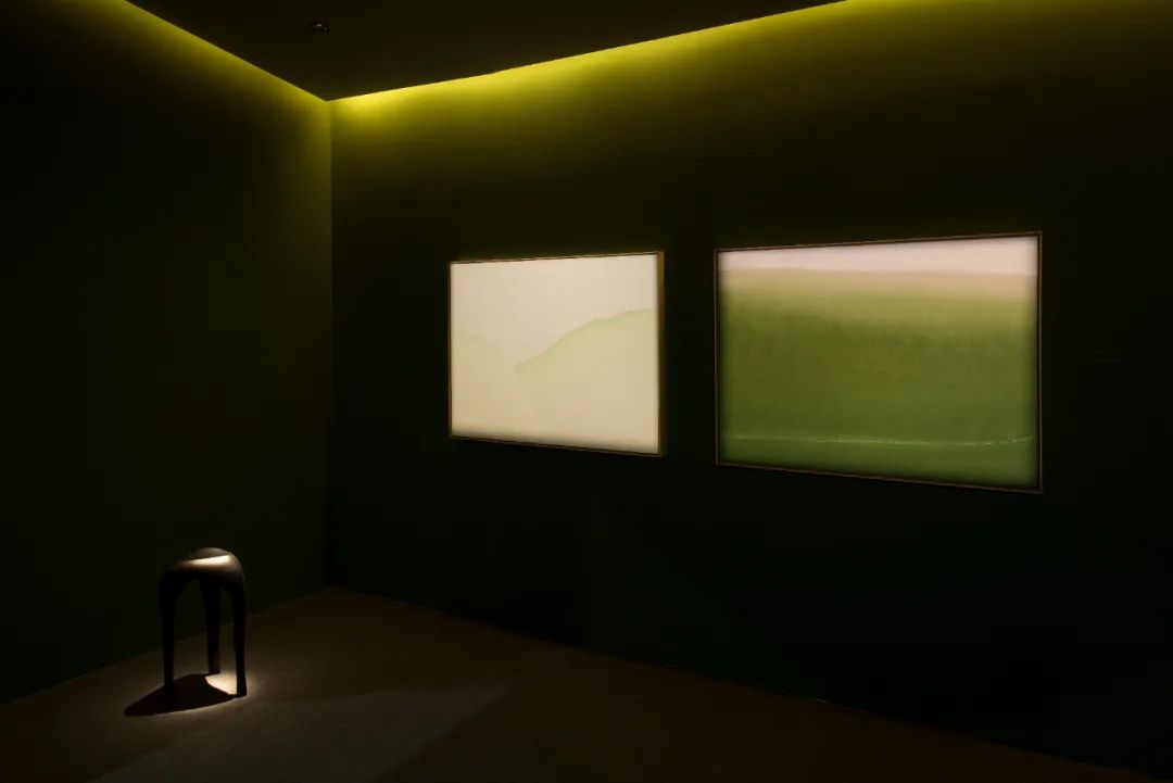 不得不说,开火老师的这两幅油画绝对是整个空间的点睛之笔,它是画本身的同时,从另一种角度看过去,画中明亮的颜色又给我们一种窗的感觉。