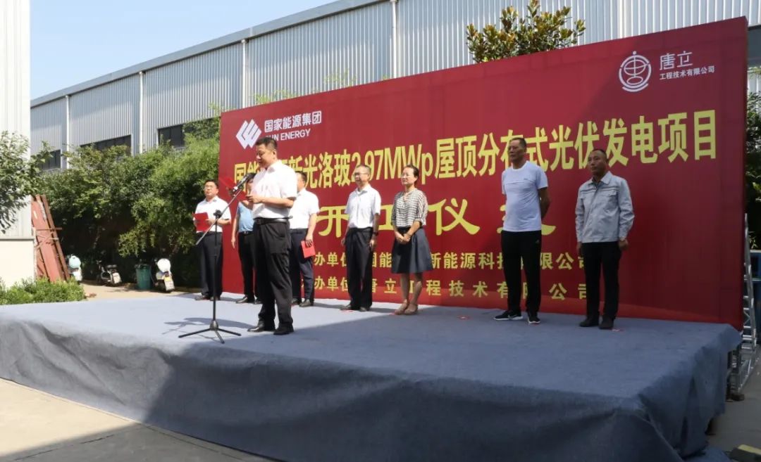7月22日,公司在兴平市浓重举行陕西新光洛玻2.97MWp屋顶分布式光伏发电项目开工仪式。国家能源集团陕西公司原工程建设部主任祁伟斌,新能源公司党委书记、董事长包鼎,副总经理朱选卫、蒋勇,兴平市发改局党委委员刘小华、高新科科长袁刚,合作单位陕西新光洛玻璃有限公司董事刘克礼,施工总承包单位唐立工程技术有限公司副总经理杜晓东出席开工仪式。建设单位新能源公司及施工总承包单位、监理单位有关人员参加开工仪式。