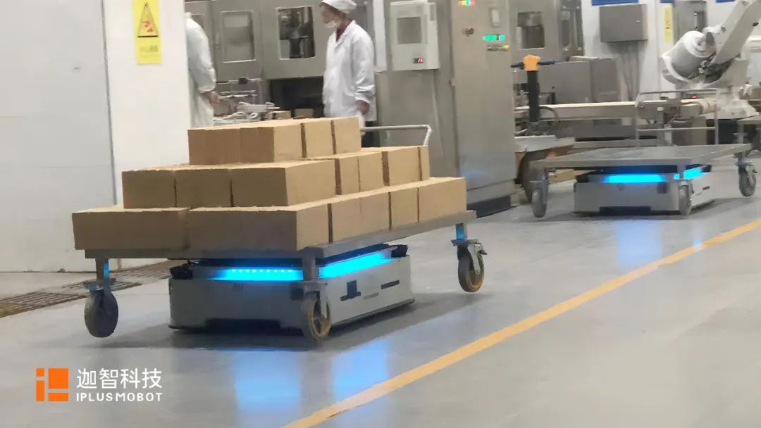 根据用户的需求,迦智科技部署了包含数十台EMMA1000车队,自动充电桩,调度系统等在内的整套智造物流解决方案,助力用户实现A、B两个产区,各12层楼,多曲块料车在产线、曲房、曲库、粉碎区等不同工序间的高效流转,提高生产效率,提升产线智能化水平。