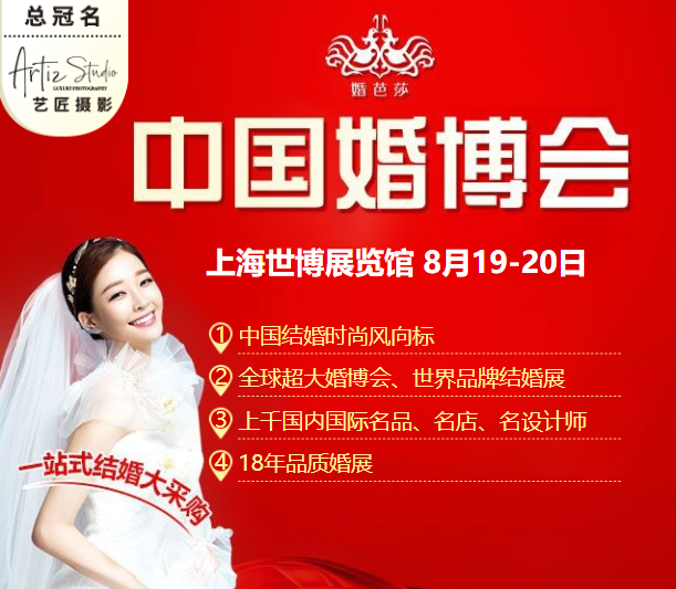 上海婚博会:2023年8月19-20日 上海世博展览馆 成都婚博会:2023年8月19-20日 中国西部国际博览城 北京婚博会:2023年9月9-10日 北京国家会议中心