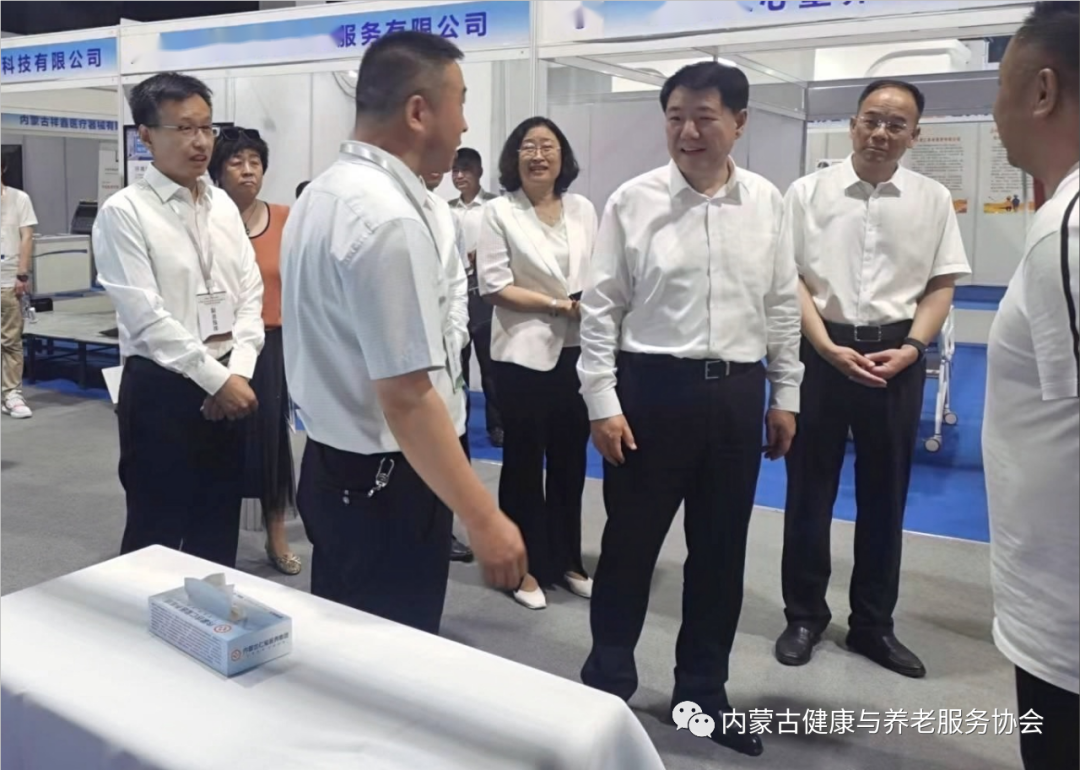 展览会在吸引众多参观和咨询者的同时得到了各级领导的关注,自治区政府奇巴图副主席、呼和浩特市政府马丙全副市长、自治区民政厅刘程民副厅长、自治区民政厅呼和浩特市民政局相关领导亲临内蒙古健康与养老服务协会展位,了解协会发展情况。协会在呼市的班子成员集体接待并详细介绍了协会的发展情况以及为自治区养老服务业发展所做的工作。
