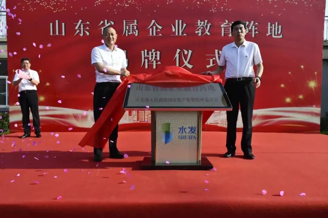 7月22日,水发集团沂蒙红色教育基地举行“山东省属企业教育阵地”揭牌仪式。水发集团党委副书记、工会主席张春生,党委委员、副总经理兼水发能源集团党委书记、董事长王东凯共同为“山东省属企业教育阵地”揭牌。