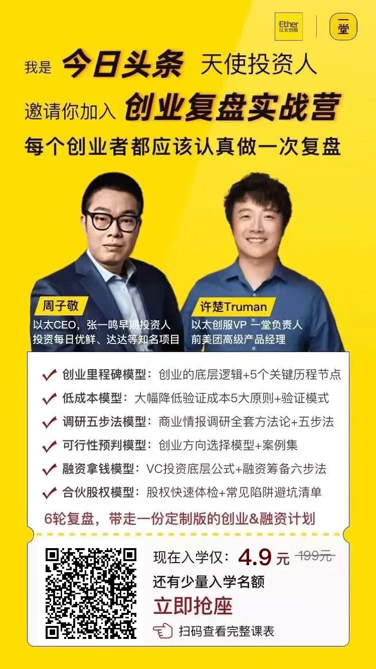 创业复盘训练营160期,优惠价格仅限前100人 点击“阅读原文”,立刻报名