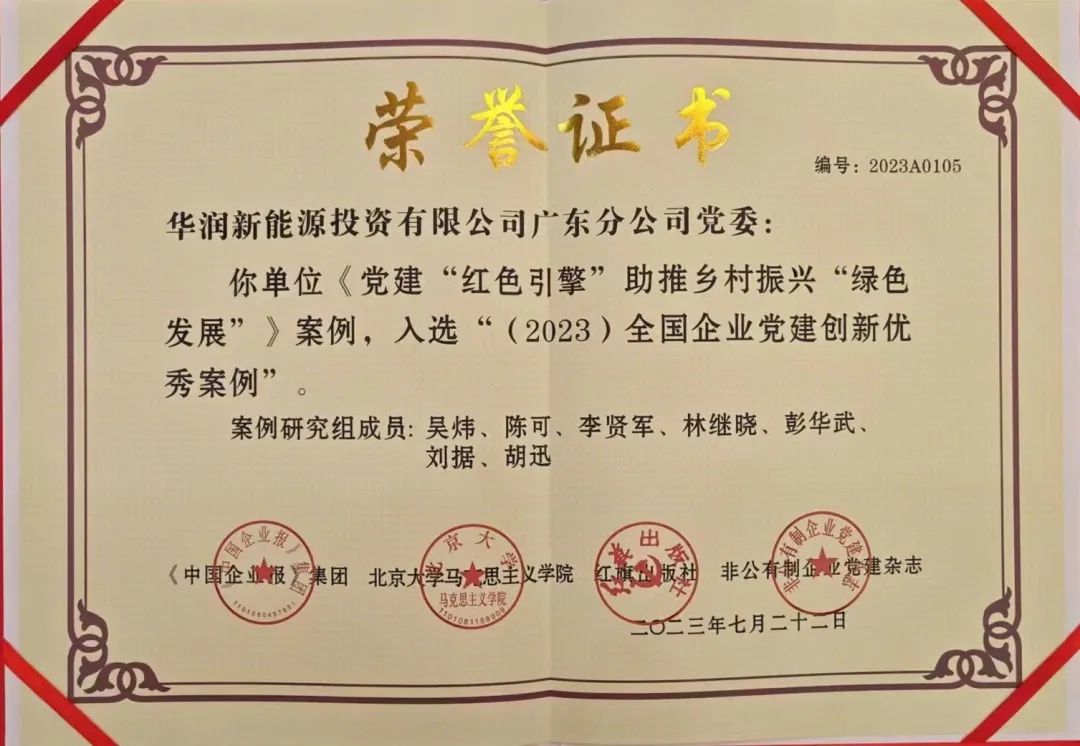 7月22日,广东新能源公司《党建“红色引擎”助推乡村振兴“绿色发展”》党建工作案例在北京获评2023年度全国企业党建创新优秀案例。