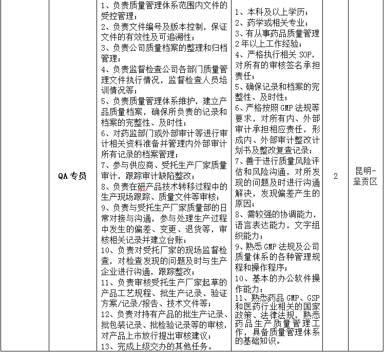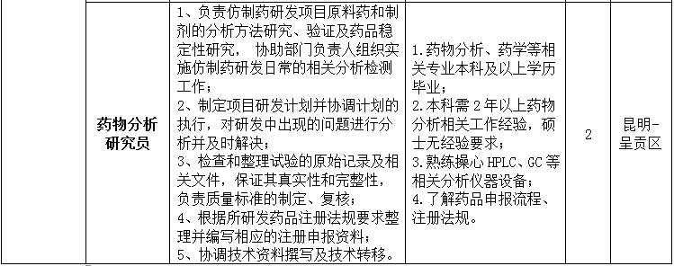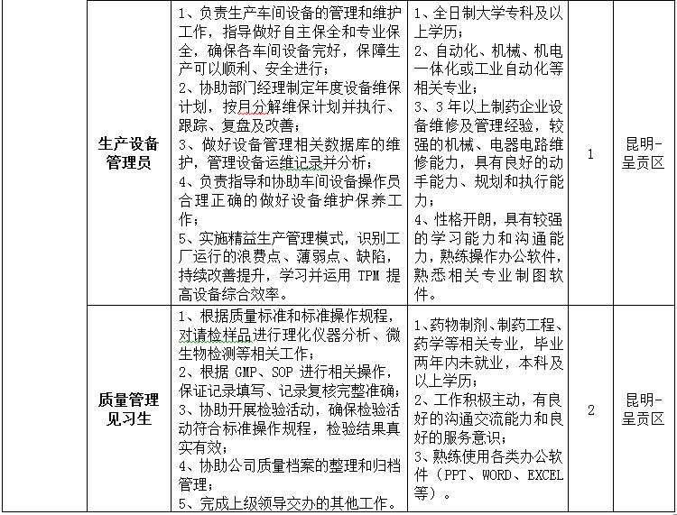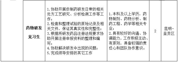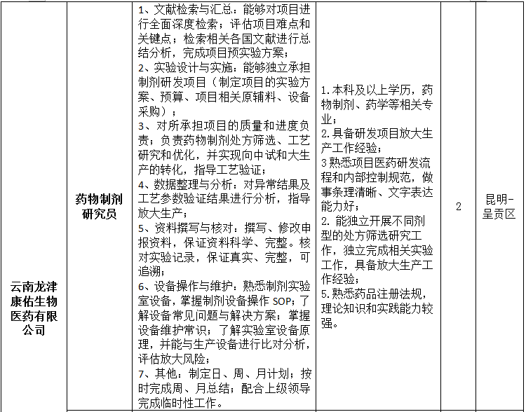 昆明龙津药业股份有限公司2023年招聘公告