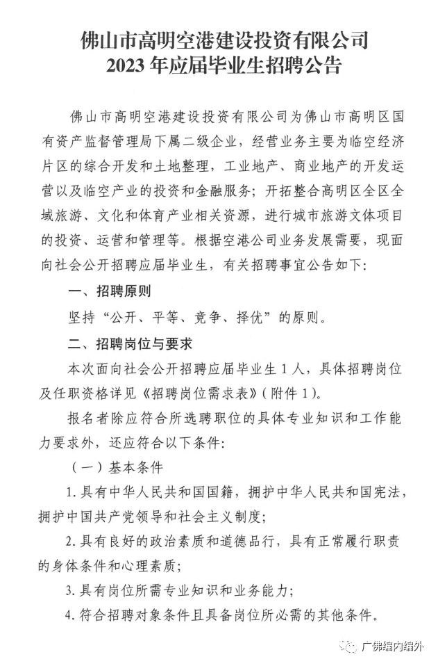 佛山市高明空港建设投资有限公司2023年应届毕业生招聘公告