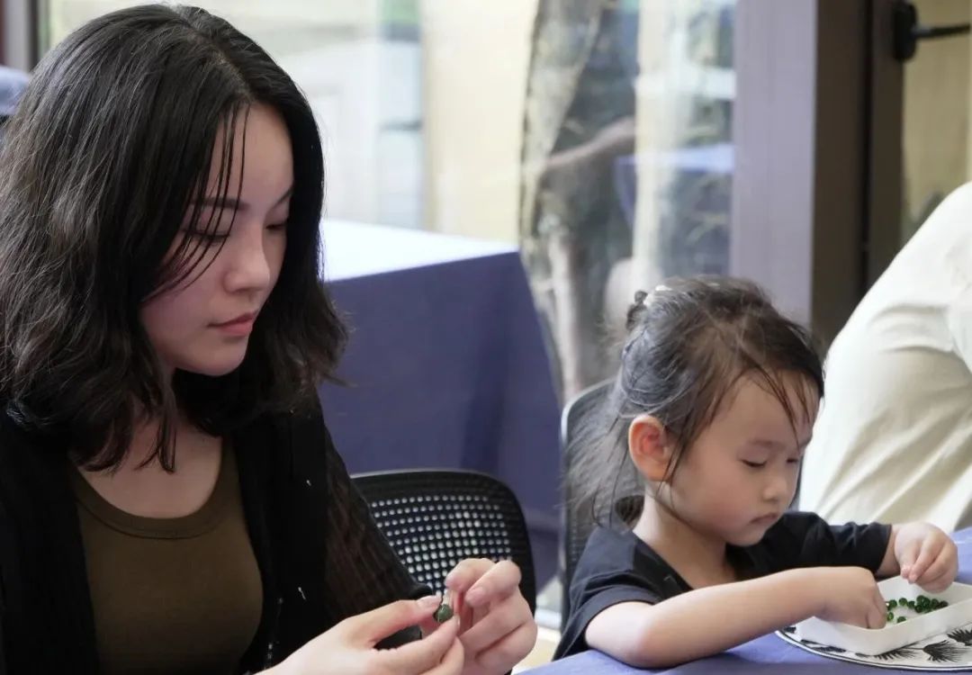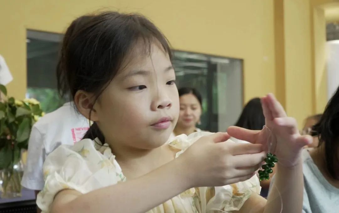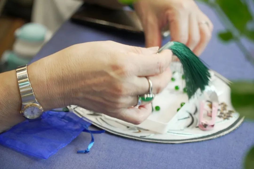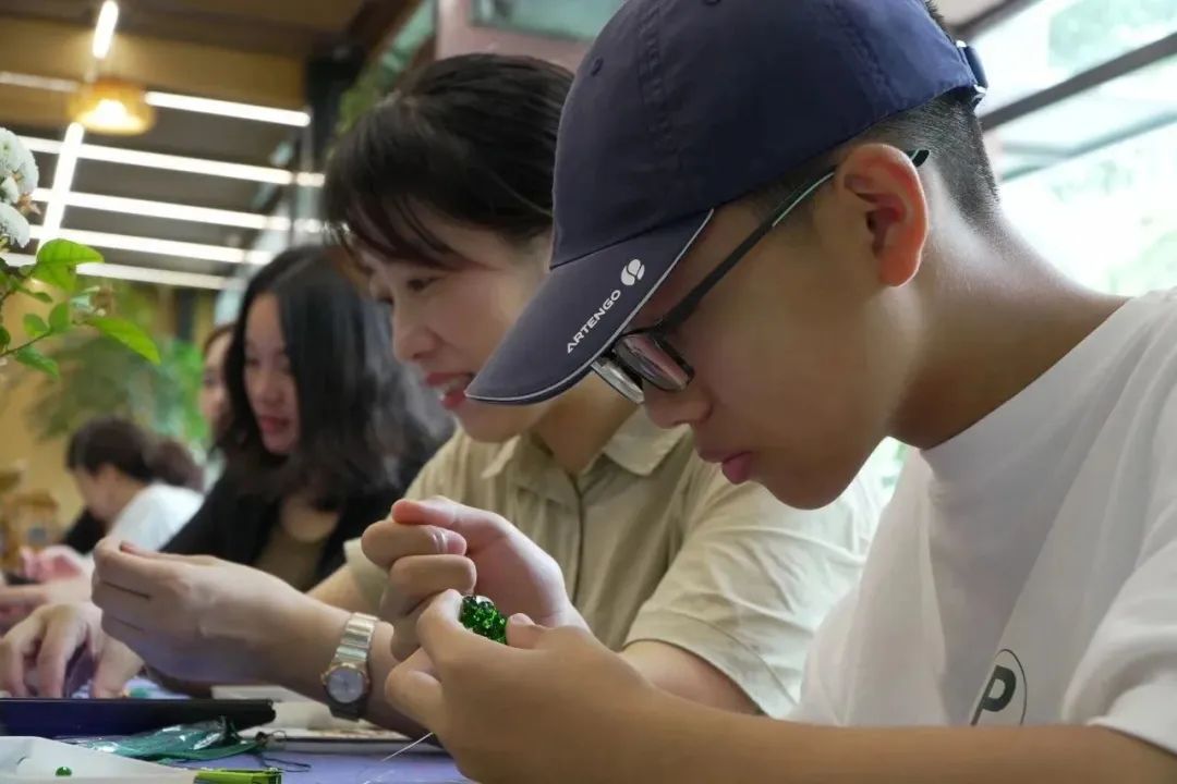还没有从茶山的美景中回过神来,我们又走进了“秀空间”生活美学馆来接受非遗手工艺术的熏陶,在这里我们体验了非遗手工翡翠辑珠项目。