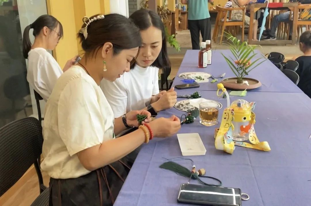 不知不觉中时间已经到了尾声,一枚枚精致的挂件完成了,大家互相分享着制作心得,展示着精美的成品,心里都美滋滋的。通过此次活动大家感受到了传统非遗文化的魅力,收获了手工制作带来的乐趣与成就感。
