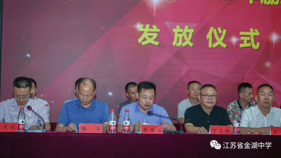 仪式上,县教师发展中心副主任孙健介绍资助情况,县教体局副局长缪华宣读励志奖学金获奖名单,教体局局长戴书丛向捐资企业家颁发捐赠证书。获奖学生和捐资企业家分别上台领奖、领取证书。