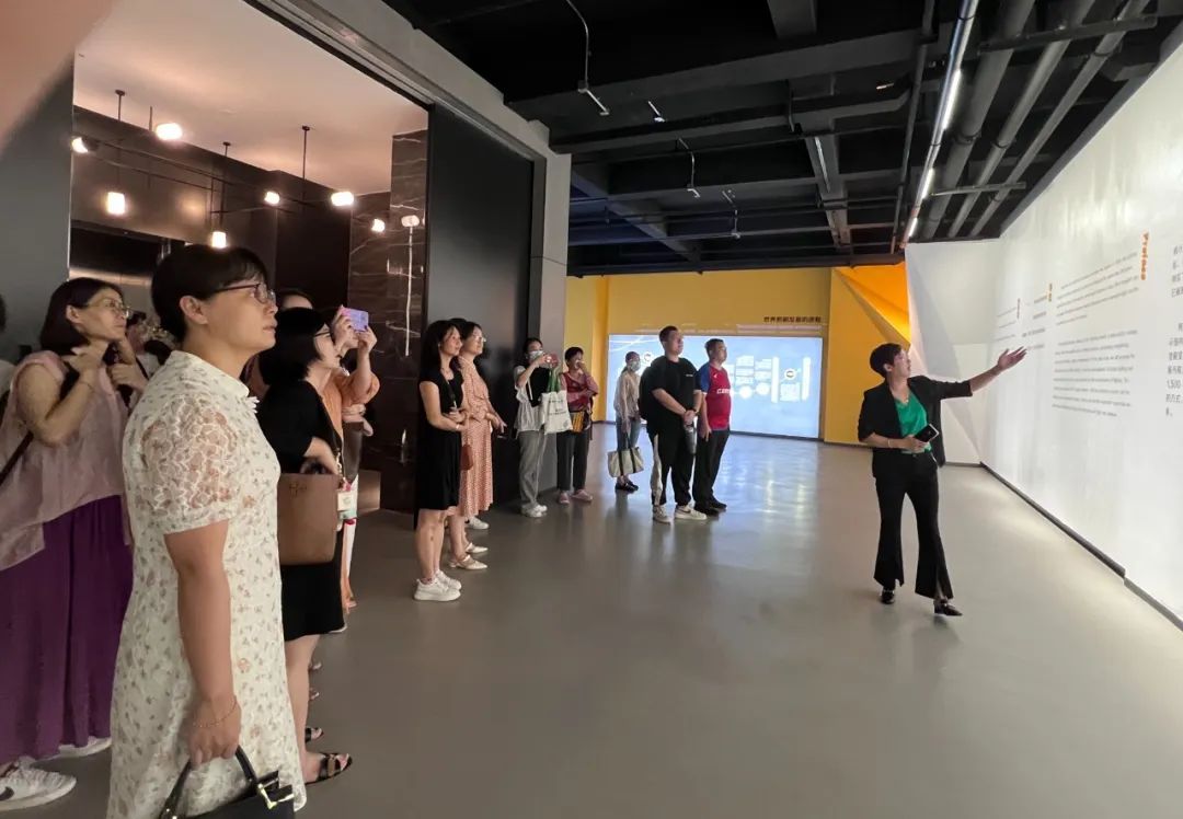 企业负责人带领运管学院领导老师及会展课程实施能力提升国培班的学员们一起参观了企业展馆,并介绍了公司的重大项目。